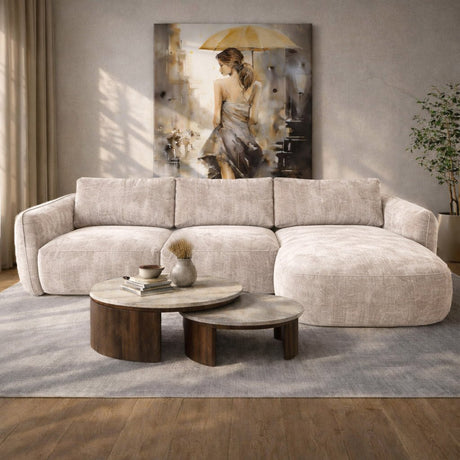 1.399,95Prix unitaire /IndisponibleCanapé d'angle avec chaise longue en tissu chenille beige Manon - droit