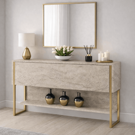 259,95Prix unitaire /IndisponibleBuffet moderne Travertin Luxe 120x80x30 - Cadre doré - Un compartiment
