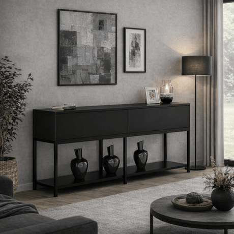 259,95Prix unitaire /IndisponibleCommode moderne anthracite Lord 150x30x80 - Cadre noir - Deux compartiments
