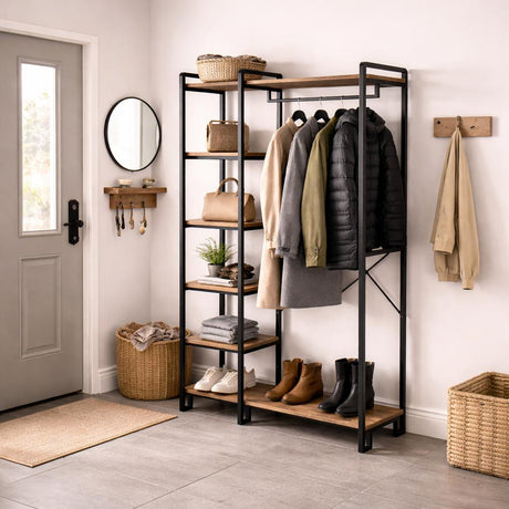 299,95Prix unitaire /IndisponibleMeuble de garde-robe Porte-manteau Rox Naturel - Avec étagères