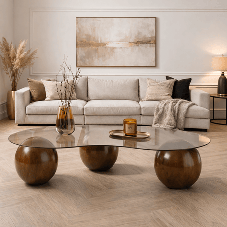 459,95Prix unitaire /IndisponibleTable basse Sphere Walnoot Transparent 120x70 cm Walnut Verre trempé