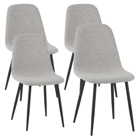 149,00Prix unitaire /IndisponibleEnsemble de 4 chaises de salle à manger scandinaves en tissu bouclé gris Swift - Sans accoudoirs