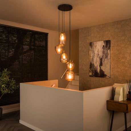 109,95Prix unitaire /IndisponibleSuspension en verre Olaf 5 lumières ambre or