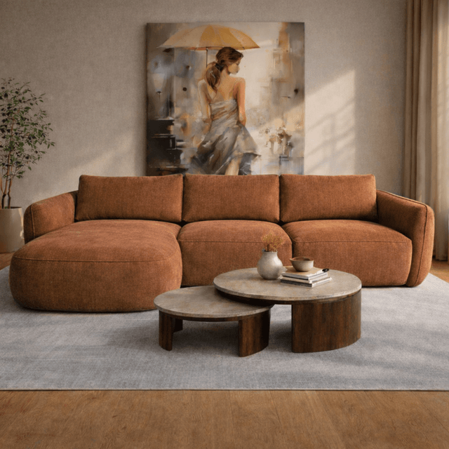 Canapé d'angle chaise longue en tissu structurel cuivré Dwayne - gauche