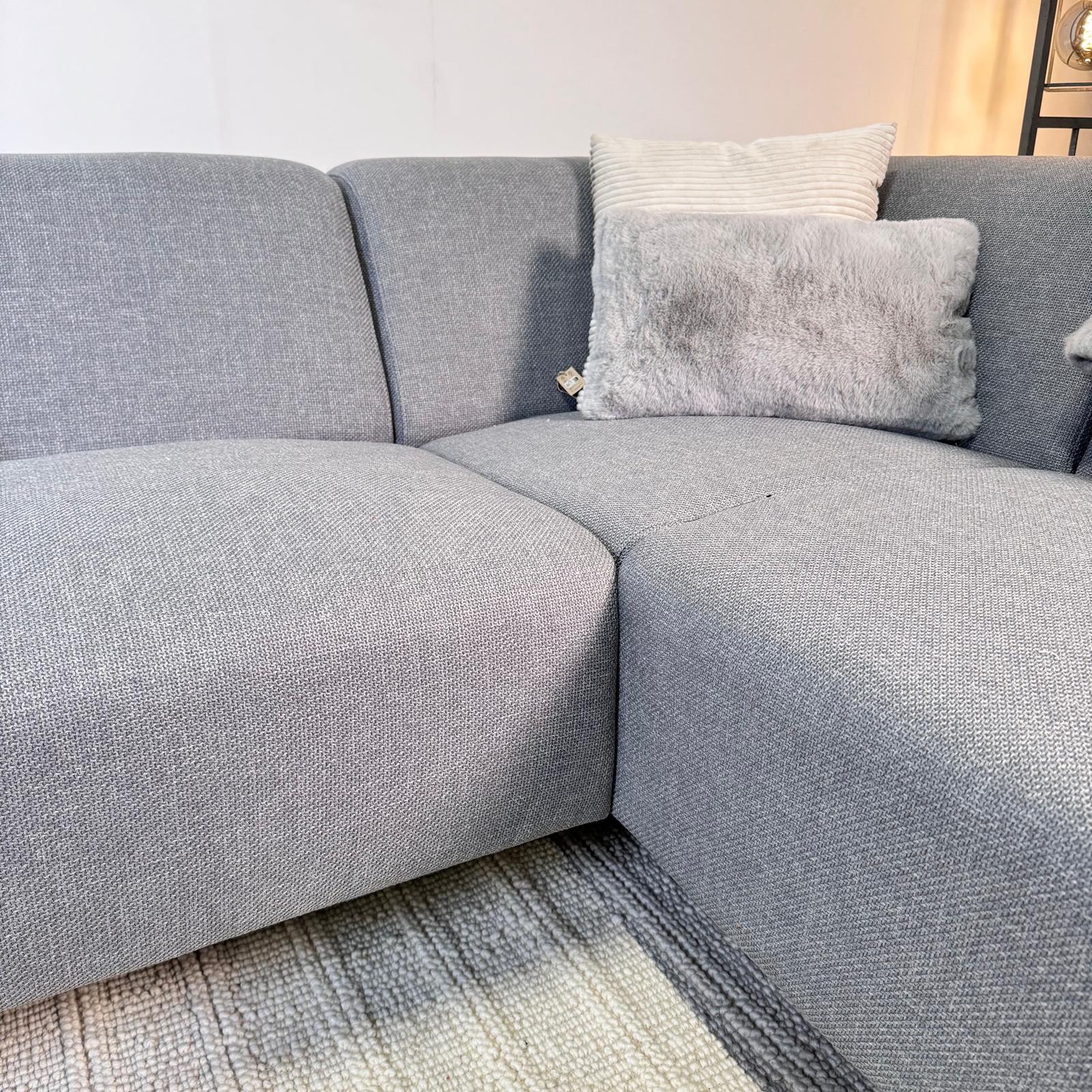 Canapé d'angle avec lounge compacte en tissu recyclé gris bleu Moby - gauche