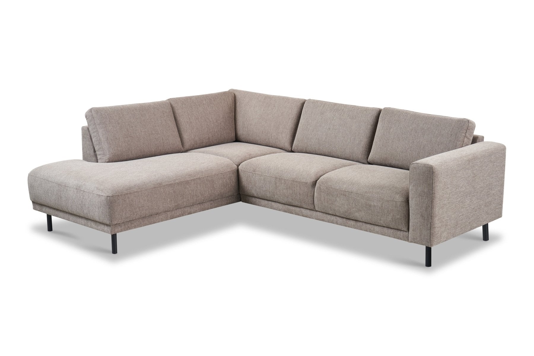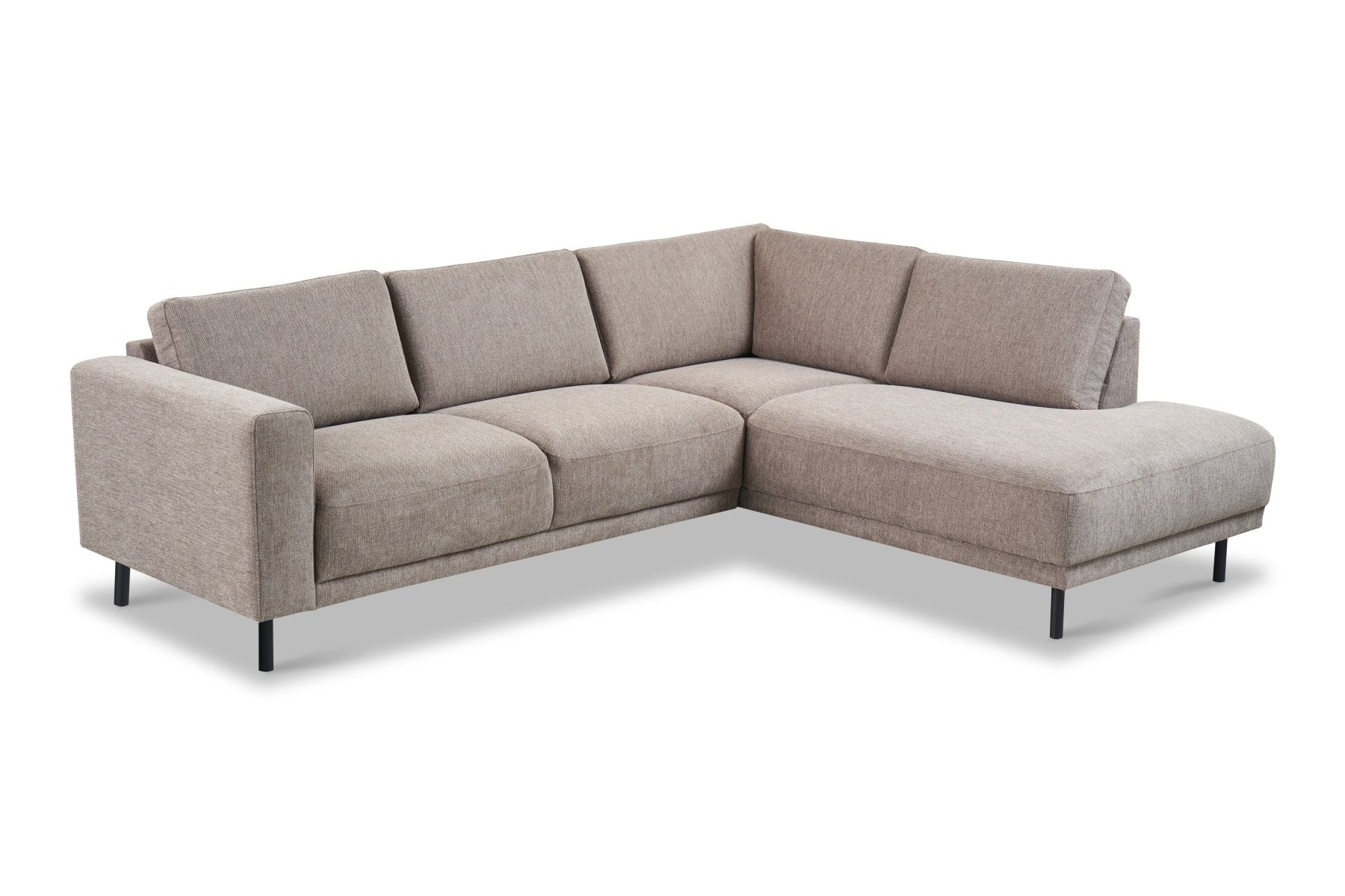 Canapé d'angle moderne 3 places à droite en taupe en tissu Aniko avec lounge 240x197x78 cm