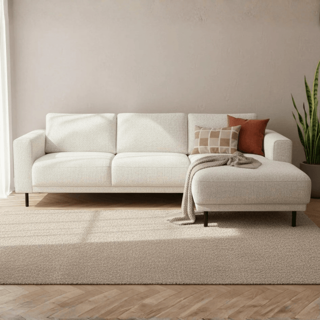Canapé d'angle moderne droit beige en tissu Aniko avec chaise longue 238x142x78 cm