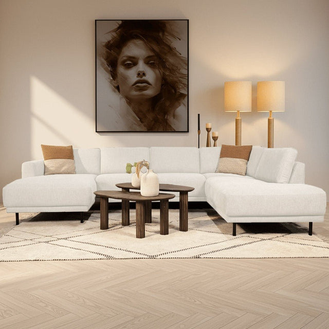 Le canapé d'angle en U Aniko est le choix idéal pour ceux qui souhaitent allier espace et style. Avec ses dimensions généreuses et sa disposition lounge confortable, ce canapé est parfait pour les familles ou ceux qui aiment recevoir des invités. Les lignes épurées et le tissu beige en font une pièce intemporelle dans votre intérieur.