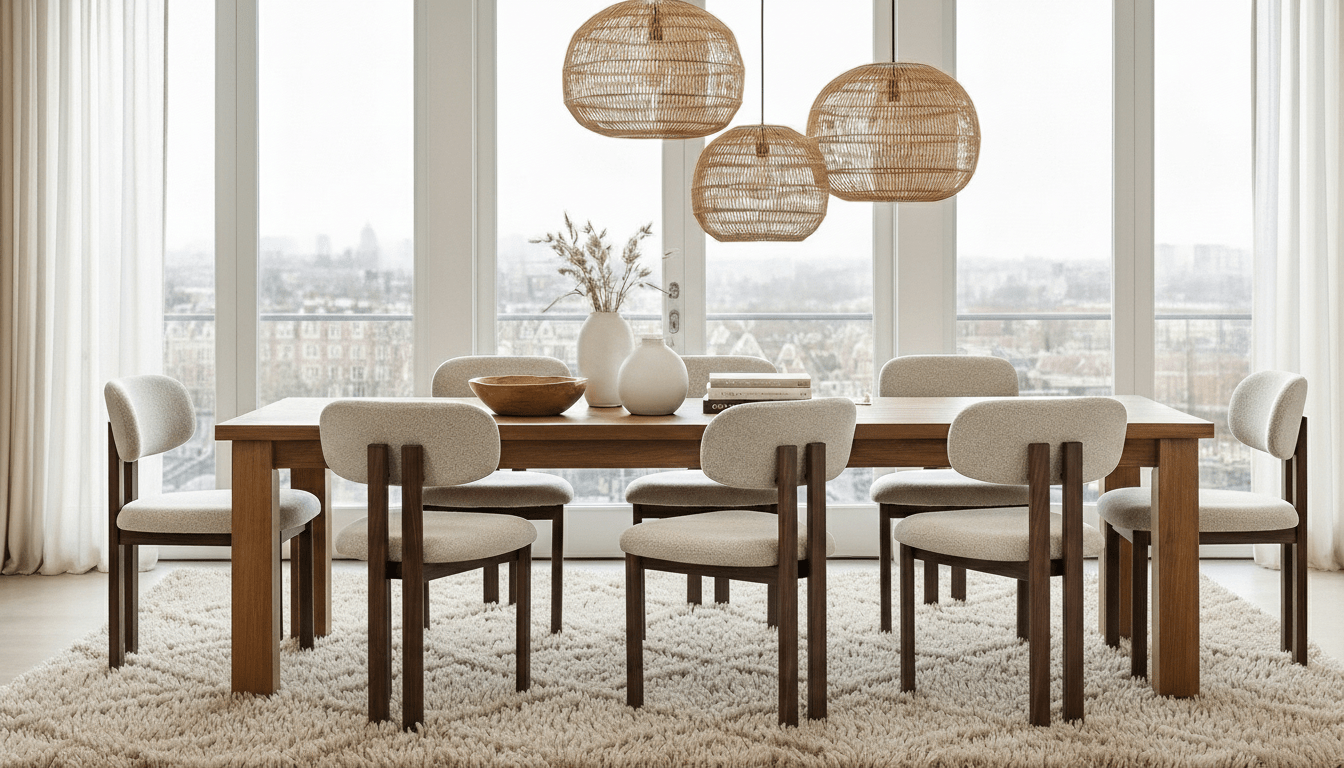 Japandi calme, confort bouclé : c'est la chaise de salle à manger Miyo.