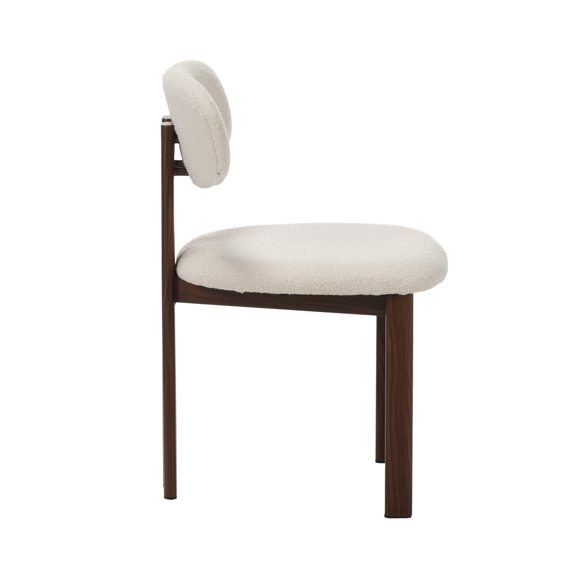 Chaise de salle à manger Japandi Miyo Bouclé Ivoire - Cadre en noyer
