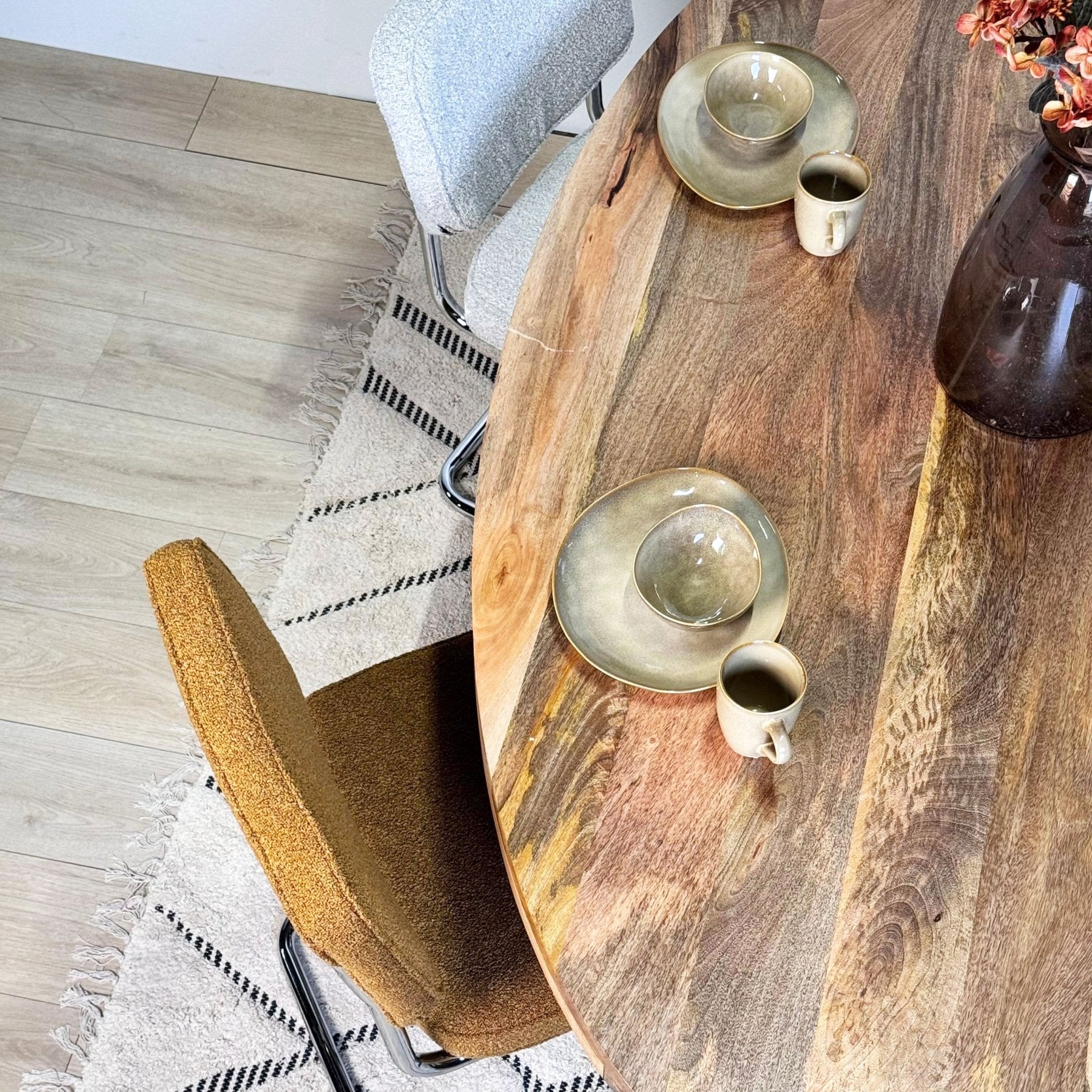 Bouclé, un tissu durable et luxueux avec une texture douce et des boucles, ajoute confort et style aux meubles, le rendant parfait pour un look chaleureux et chic dans n'importe quel intérieur.
