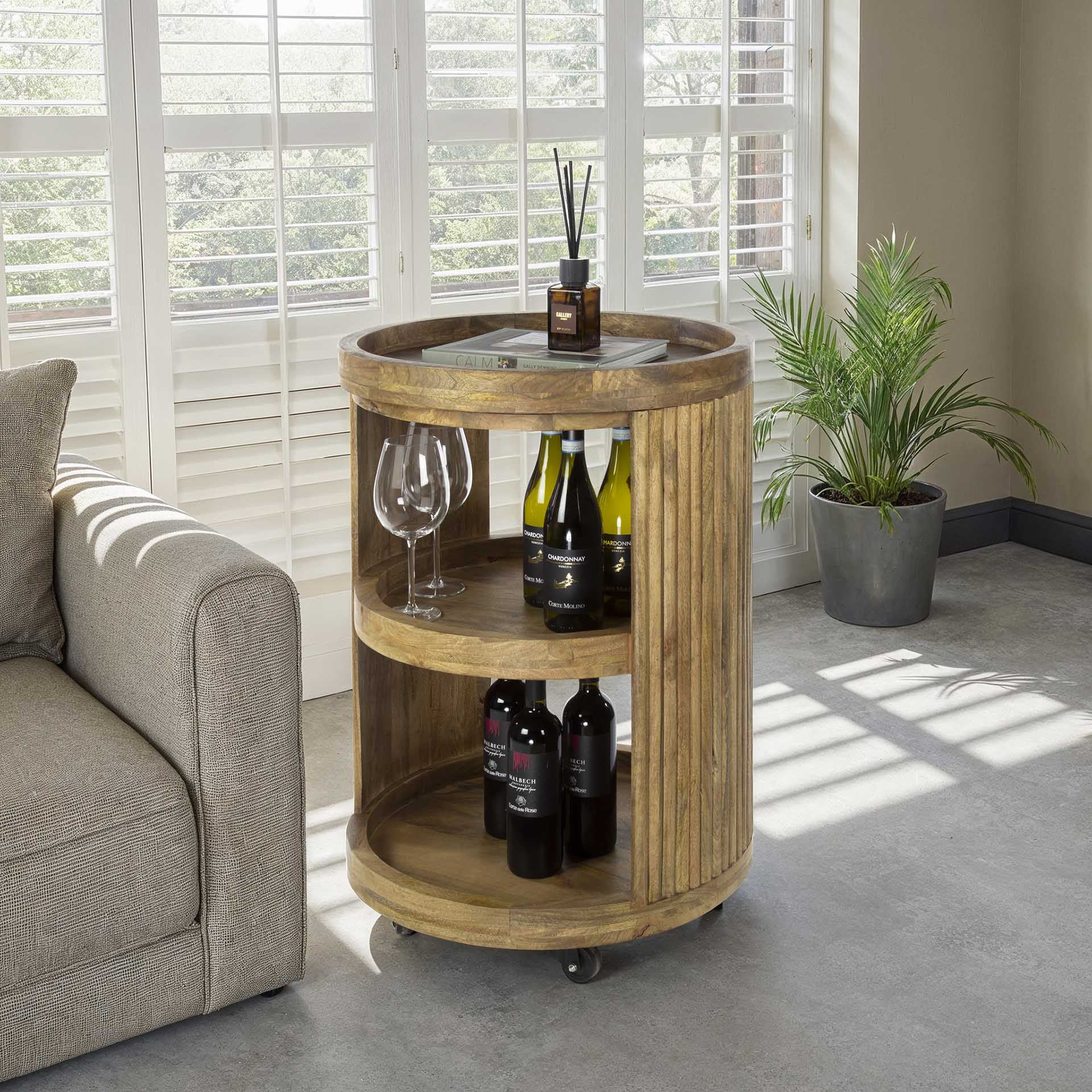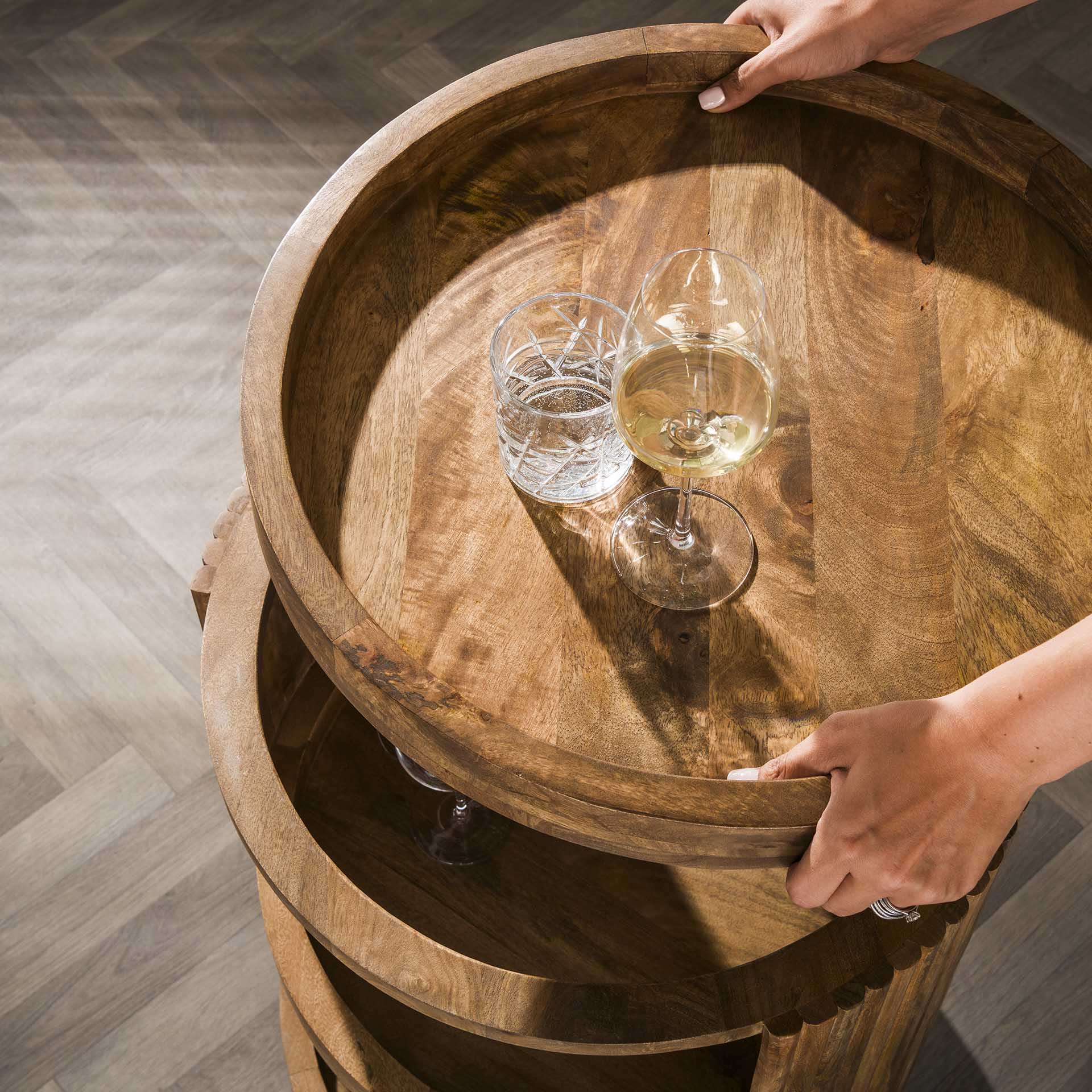 Description et spécifications de Chariot de bar Bois de manguier couleur sable sur roues