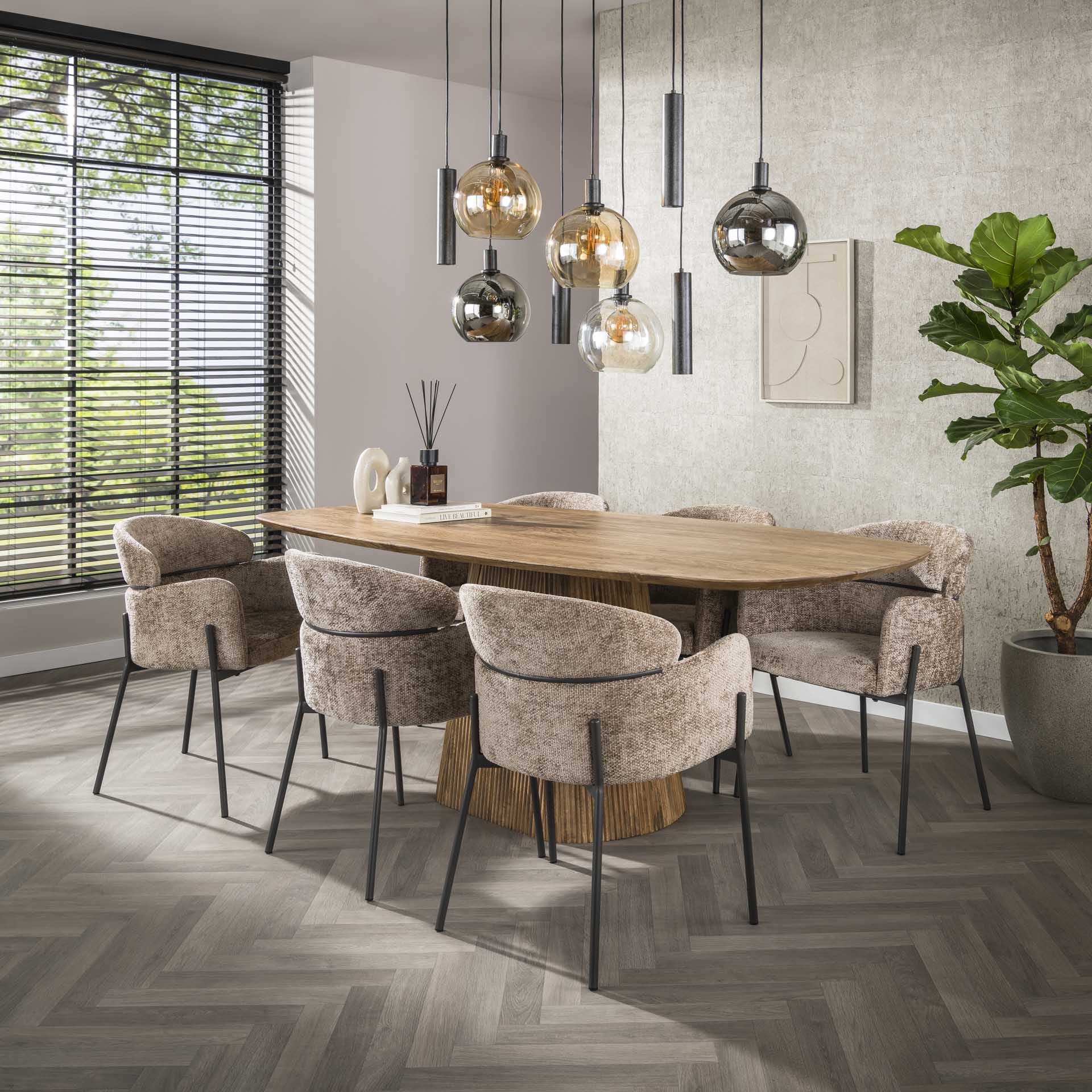 Ce fauteuil élégant avec un dossier rond est le complément parfait pour votre salle à manger. Avec sa couleur champagne riche Hoven, il apporte une touche de style à chaque espace. Ce fauteuil n'est pas seulement beau, mais aussi confortable, idéal pour de longs dîners entre amis et en famille.
