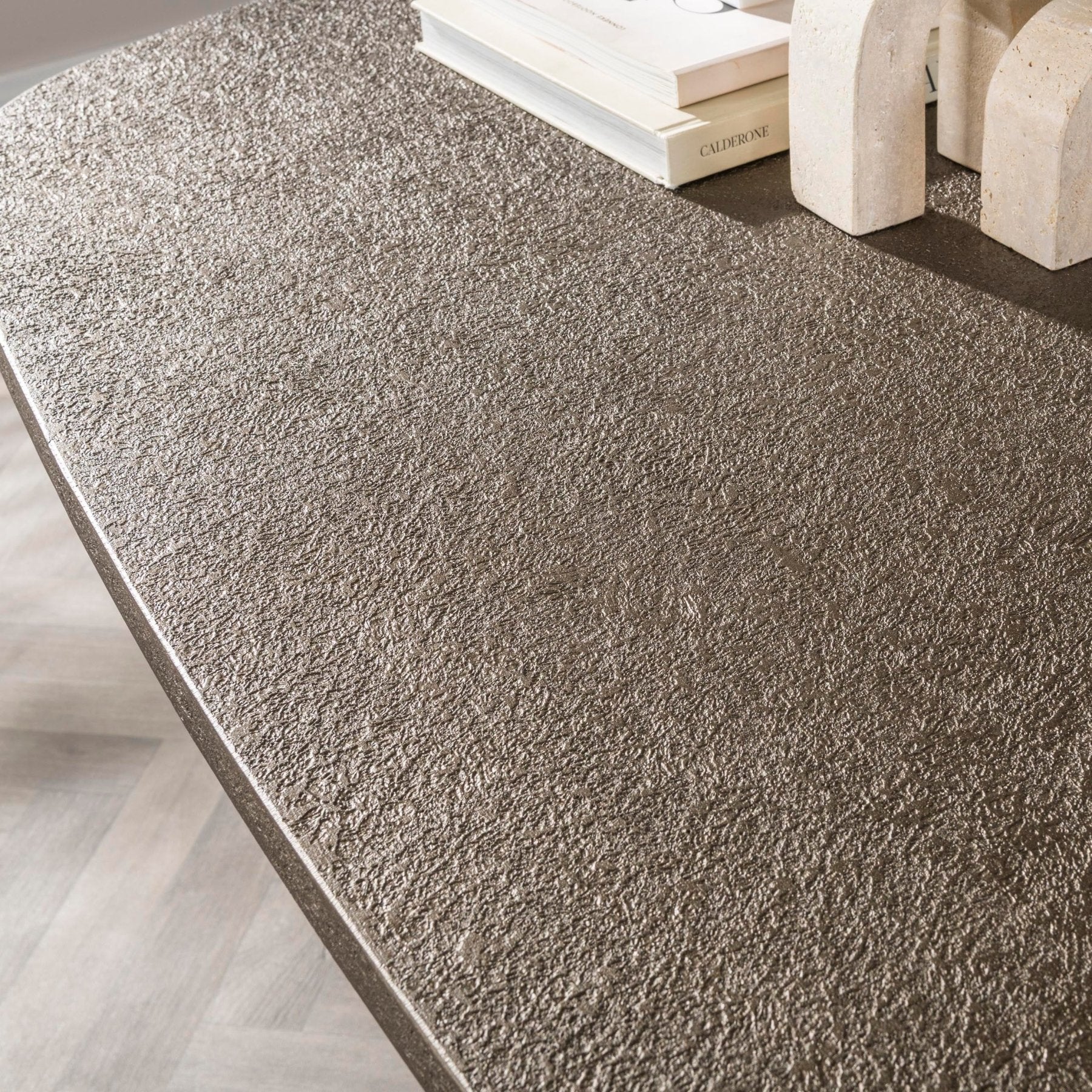 Met een royale lengte van 180 cm biedt de Virello comfortabel plek voor meerdere gasten, terwijl de zachte, afgeronde lijnen het geheel vriendelijk en modern houden. De bronstint met liquid metal uitstraling vangt het licht subtiel en maakt van deze tafel een echte blikvanger, zonder schreeuwerig te worden.