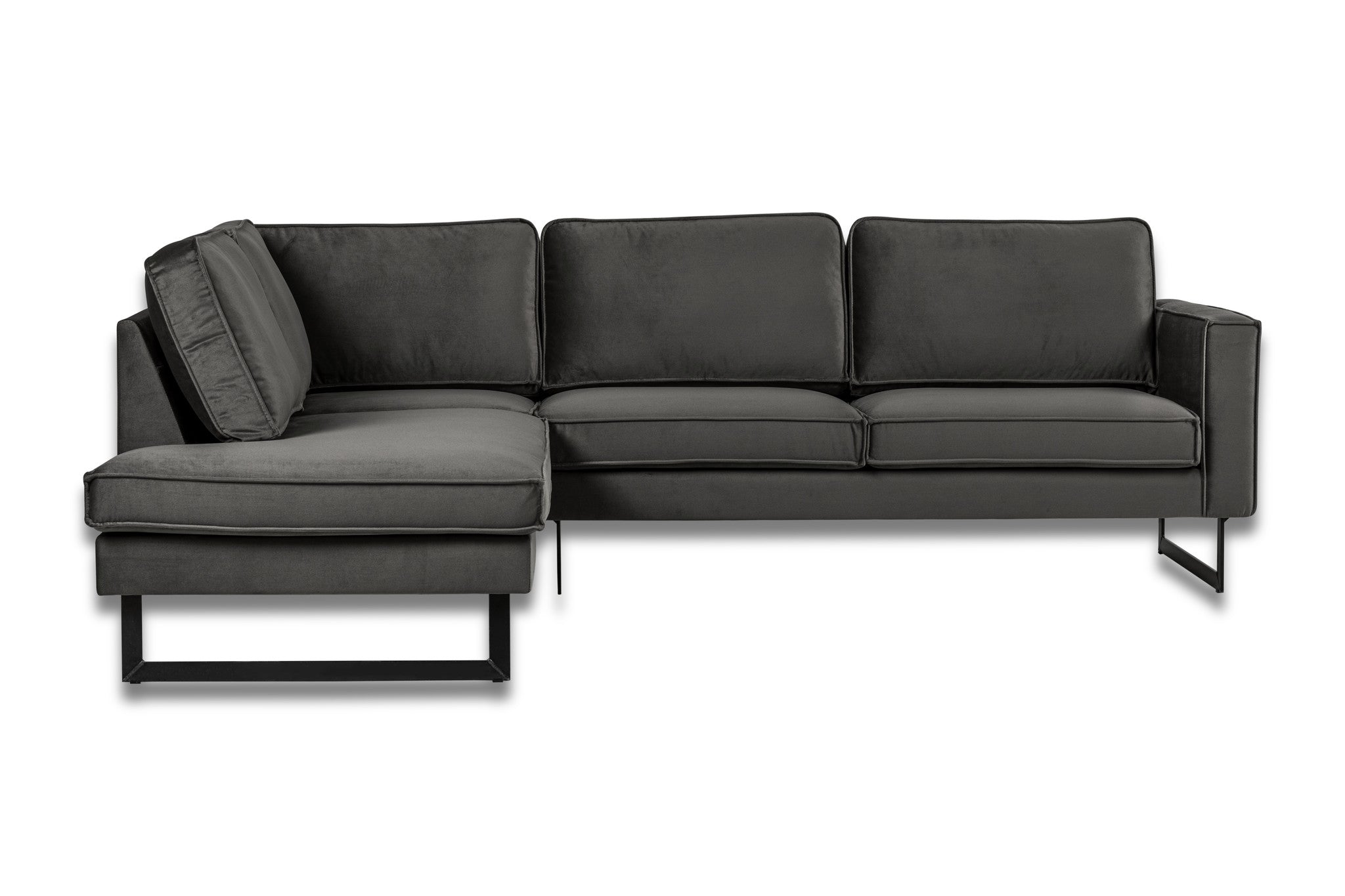 Canapé d'angle avec coussins amovibles en velours anthracite Quinn - côté gauche