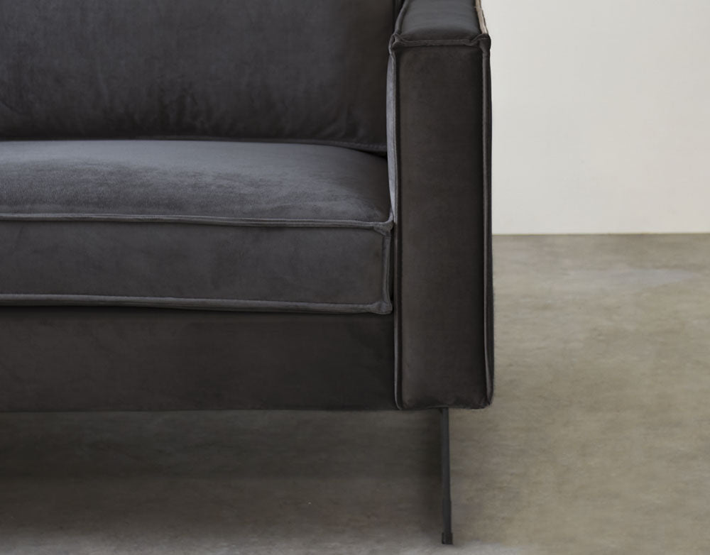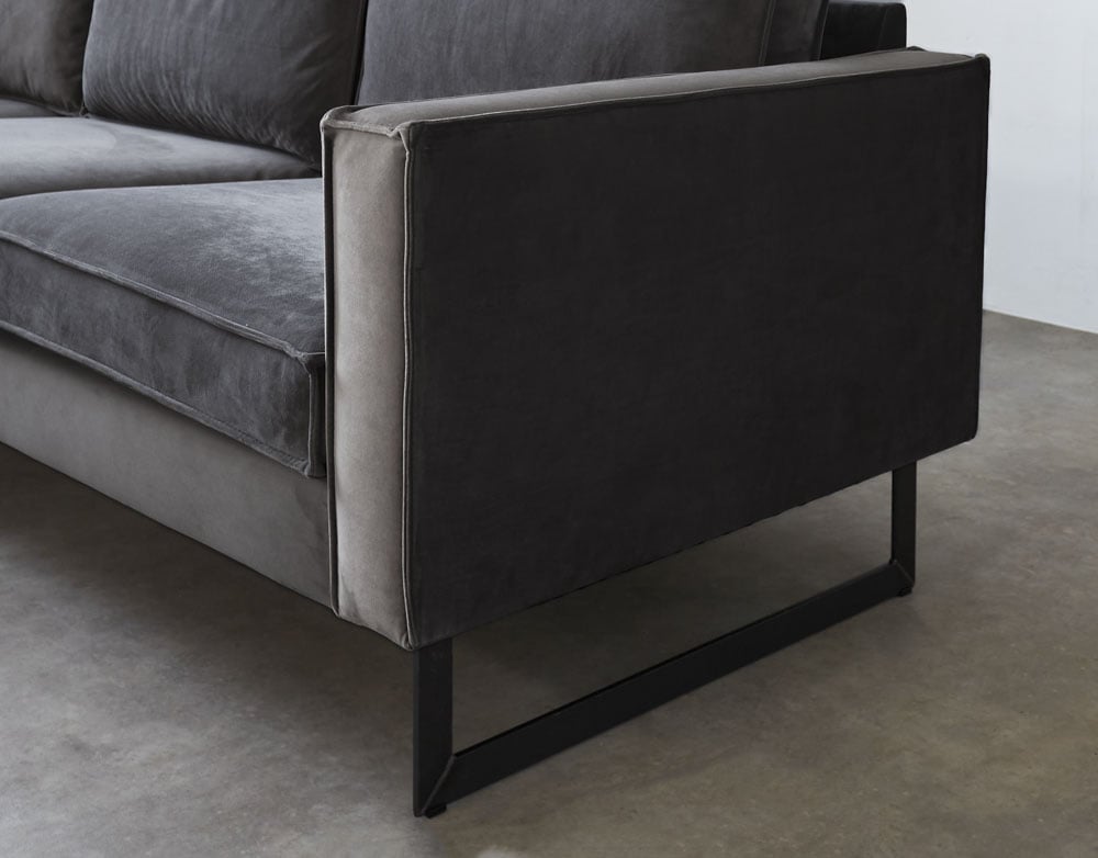 Description et spécifications de Canapé d'angle avec coussins amovibles en velours anthracite Quinn - côté gauche