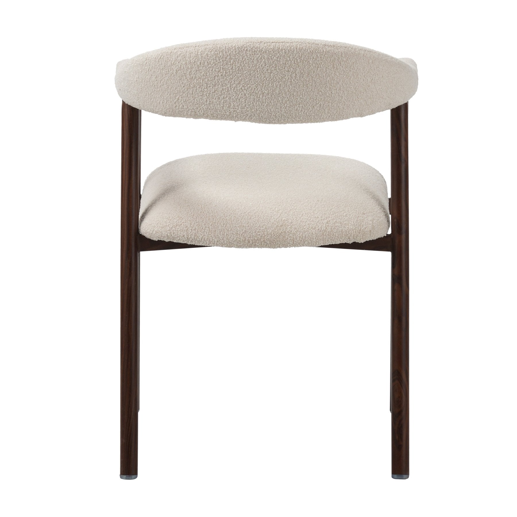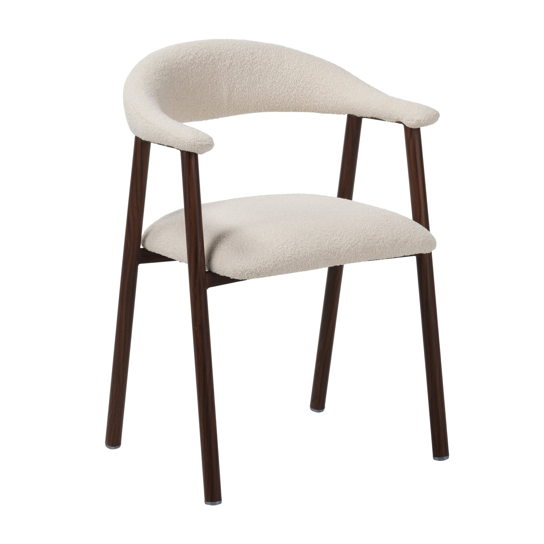 Chaise de salle à manger Japandi Ivoire Bouclé Suki - Cadre en Noyer - Avec Accoudoirs