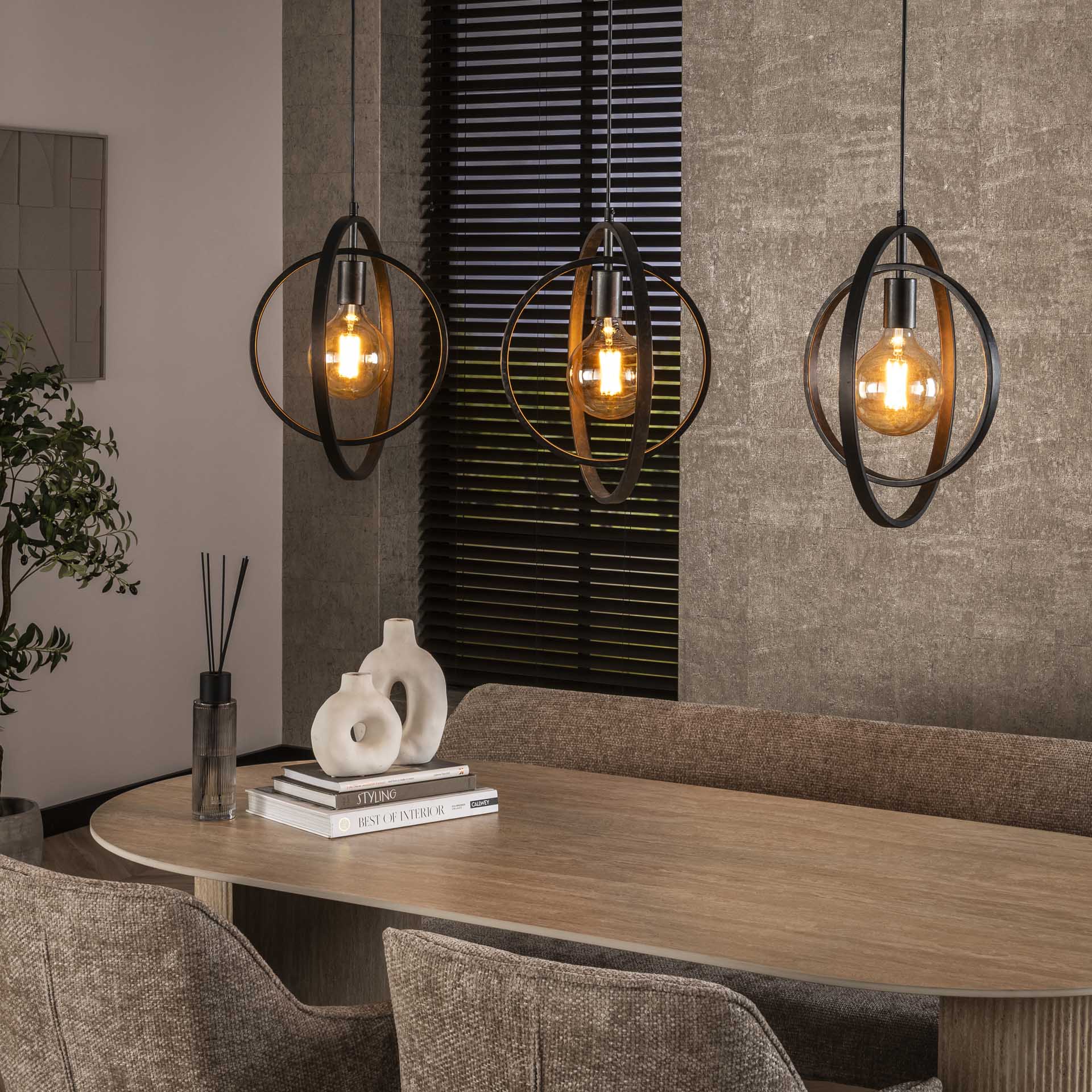 Cette lampe suspendue industrielle Otan contient trois points lumineux et est réalisée dans un modèle rond. Les cercles extérieurs sont fixés aux câbles d'alimentation, tandis que les cercles intérieurs peuvent tourner complètement et sont ajustables selon vos souhaits. La lampe suspendue est finie en finition charbon et est un véritable accroche-regard dans votre salon ou votre cuisine. La lampe suspendue Otan est réglable en hauteur jusqu'à 150 cm. Une source lumineuse appropriée est indispensable ; la lumière est en effet répartie de manière agréable dans l'espace grâce à l'abat-jour ouvert.