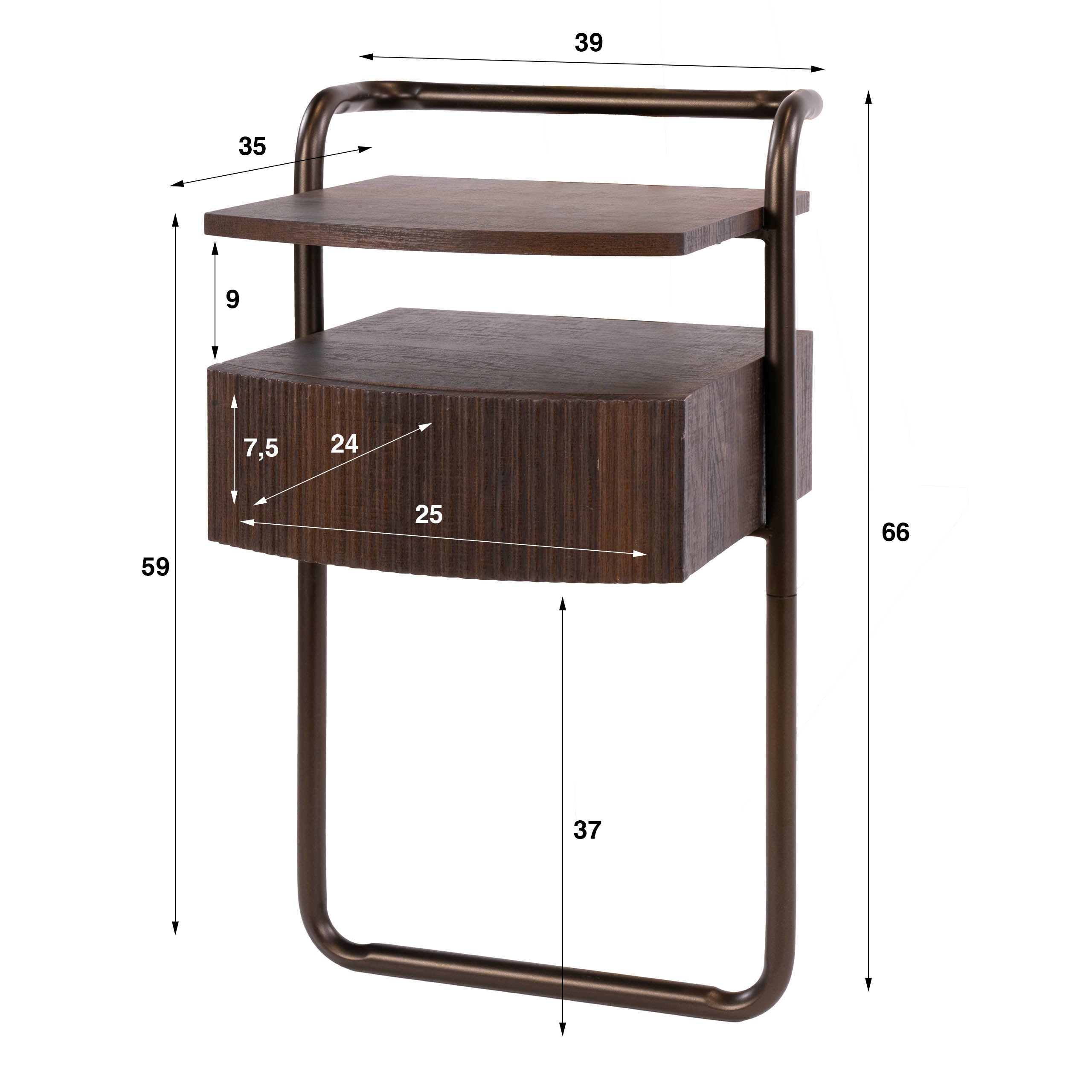 Description et spécifications de Nachtkastje met 1 lade donkerbruin hout brons frame Blaze