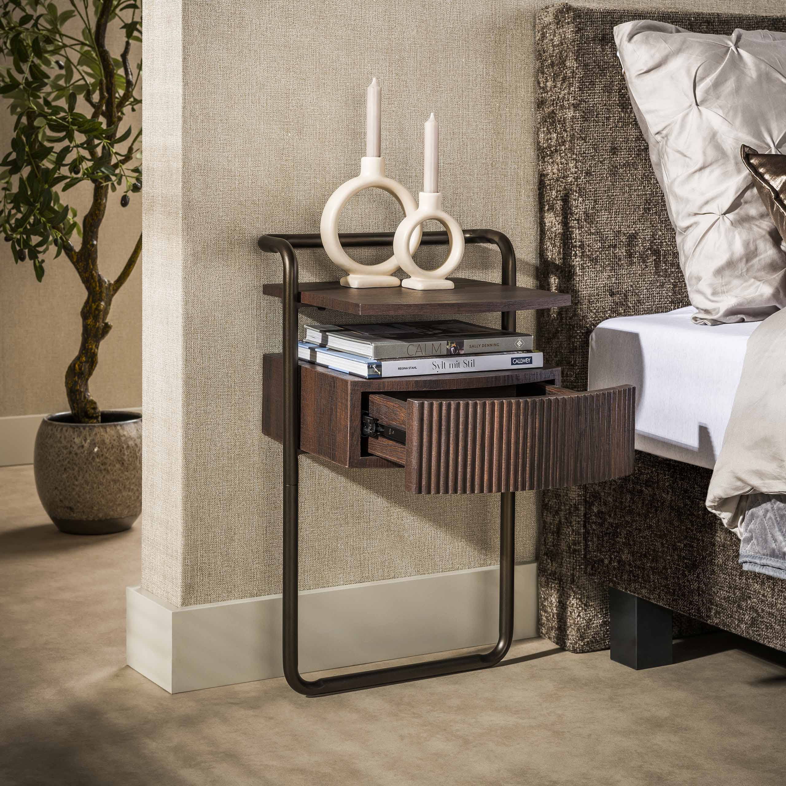 Nachtkastje met 1 lade donkerbruin hout brons frame Blaze