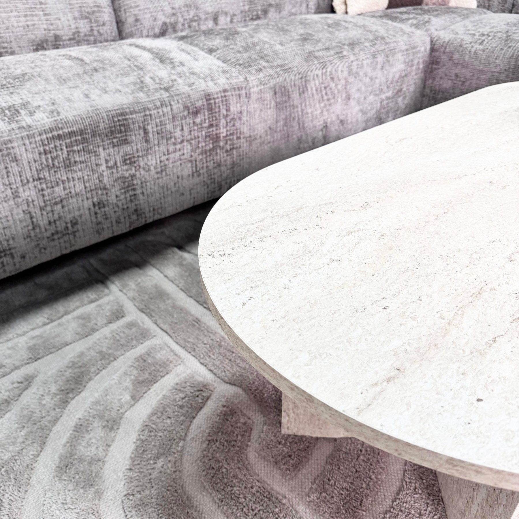 Table basse ovale aspect travertin Sabla - 119x60