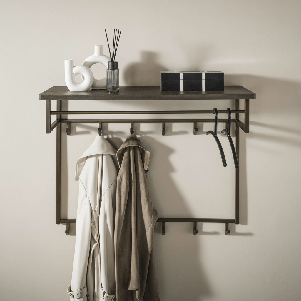 Porte-manteau Ferre 12-Crochets - Avec Étagère à Chapeaux - Métal Bronze Antique