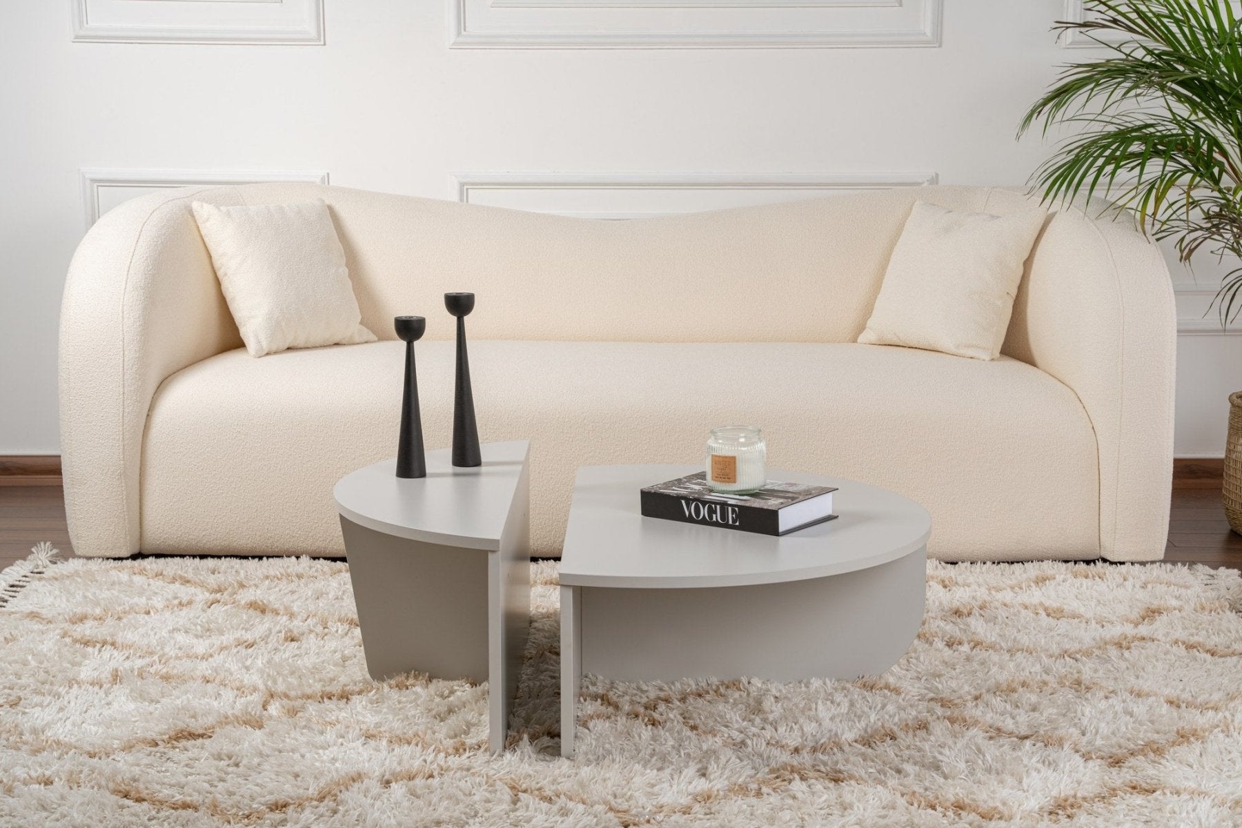 Table basse ronde grise à niveaux en mélamine 90 cm Orin
