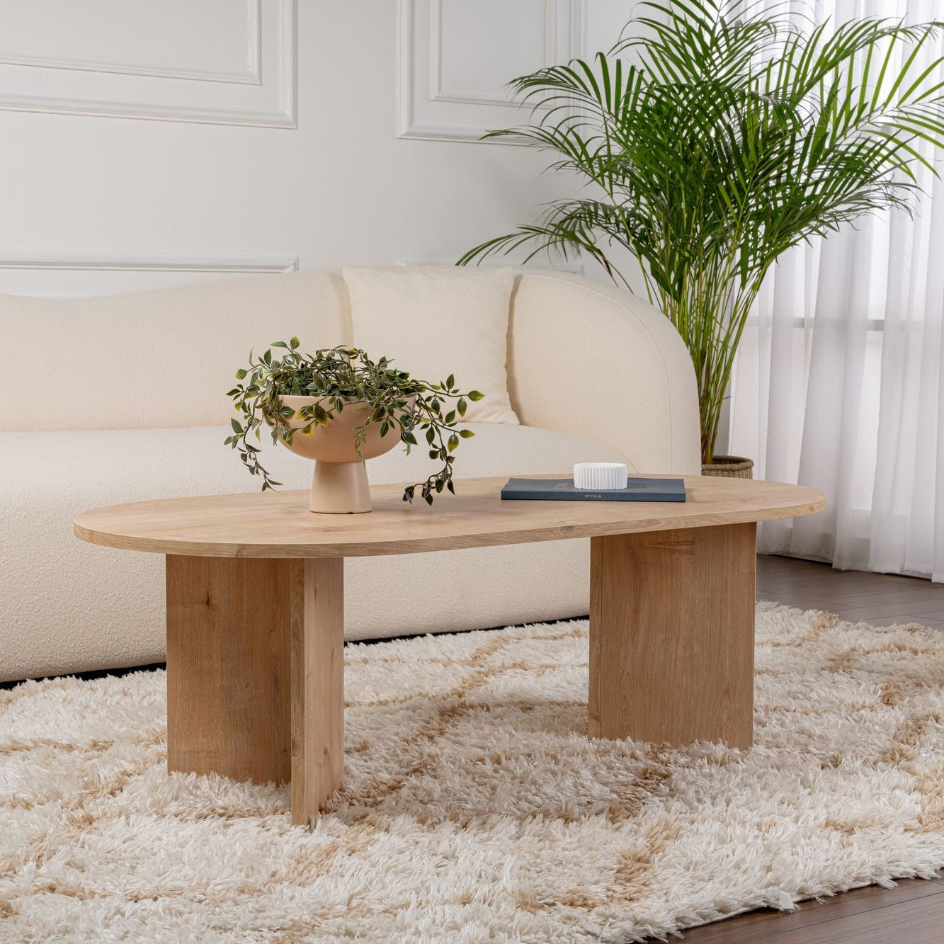 Salontafel Sapphire Oak Melamine 119x60x40 cm Sable . De Sapphire Oak afwerking geeft een warme, tijdloze uitstraling die past bij uiteenlopende interieurstijlen en decors.