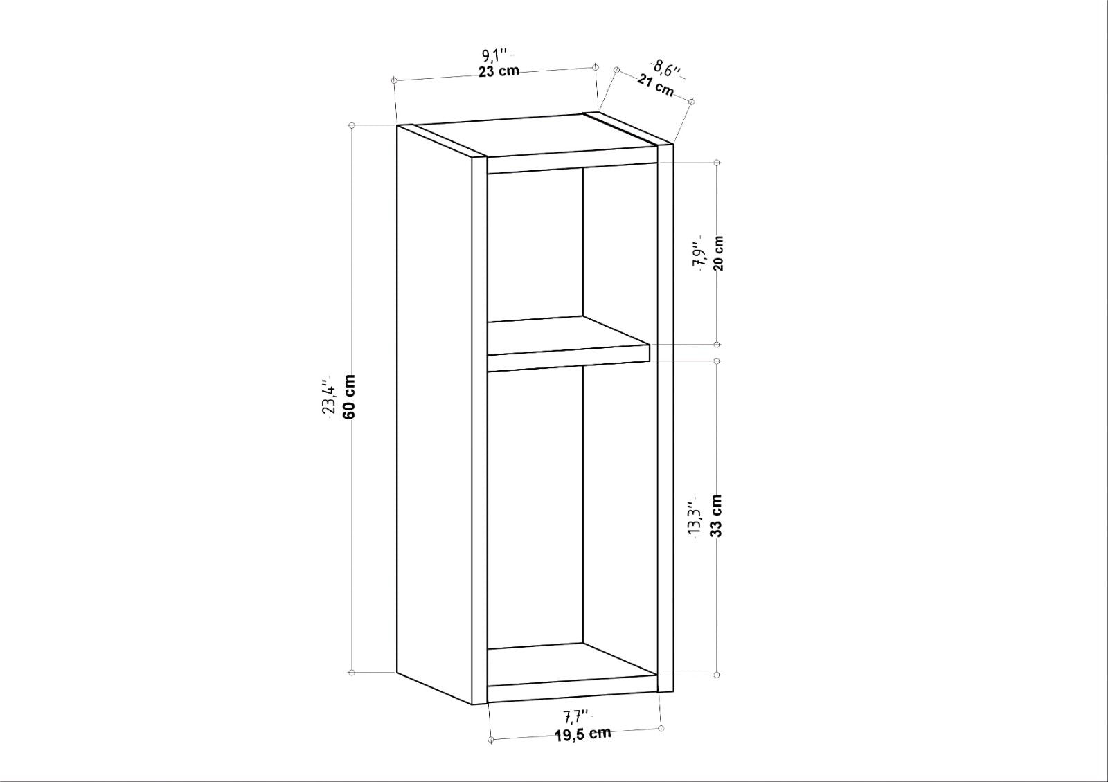 Met een lengte van 23,2 cm, een breedte van 22 cm en een hoogte van 59,6 cm is deze wandplank compact, maar verrassend bruikbaar. Hij past perfect in een smalle hoek, naast een kast of boven een bureau. Gebruik hem in de hal voor sleutels en kleine items, in de woonkamer voor decoratie of in de badkamer voor verzorgingsproducten.