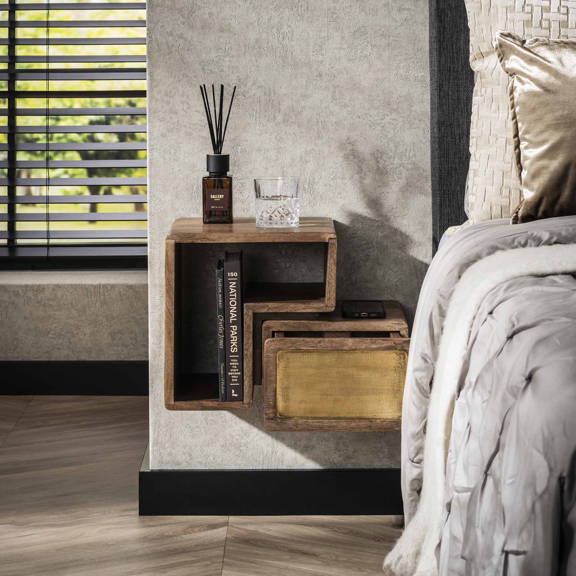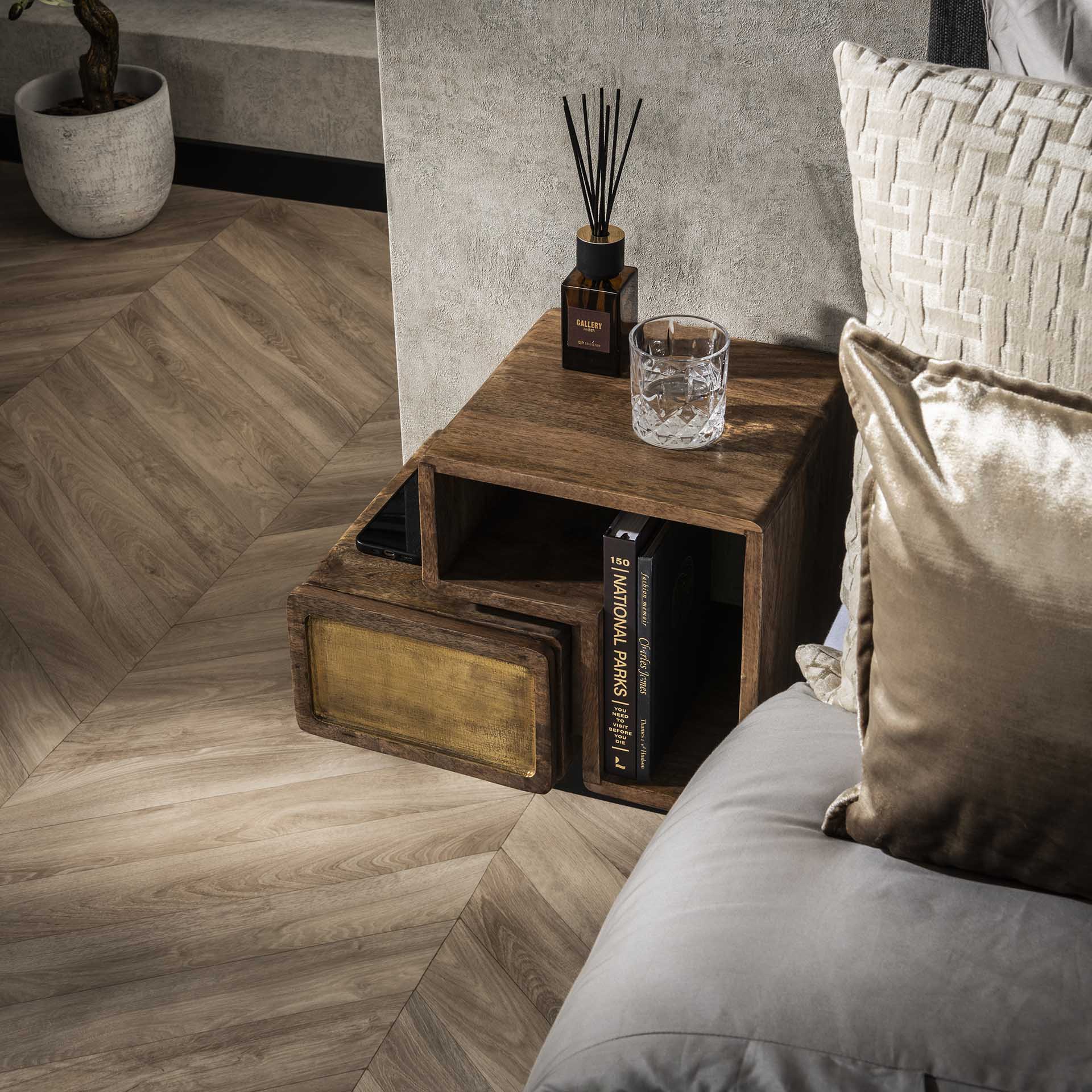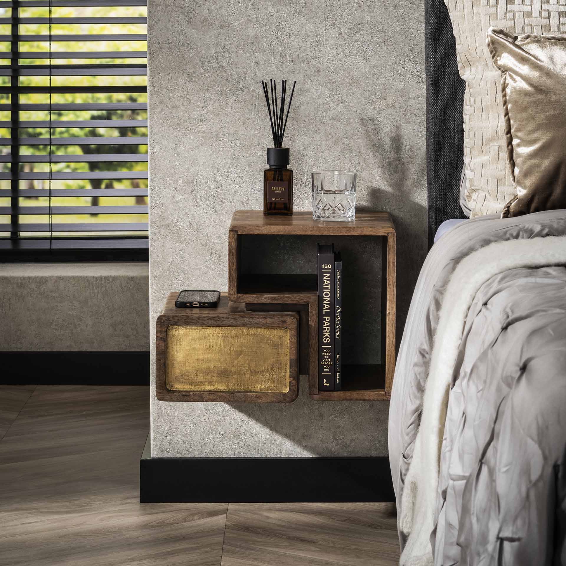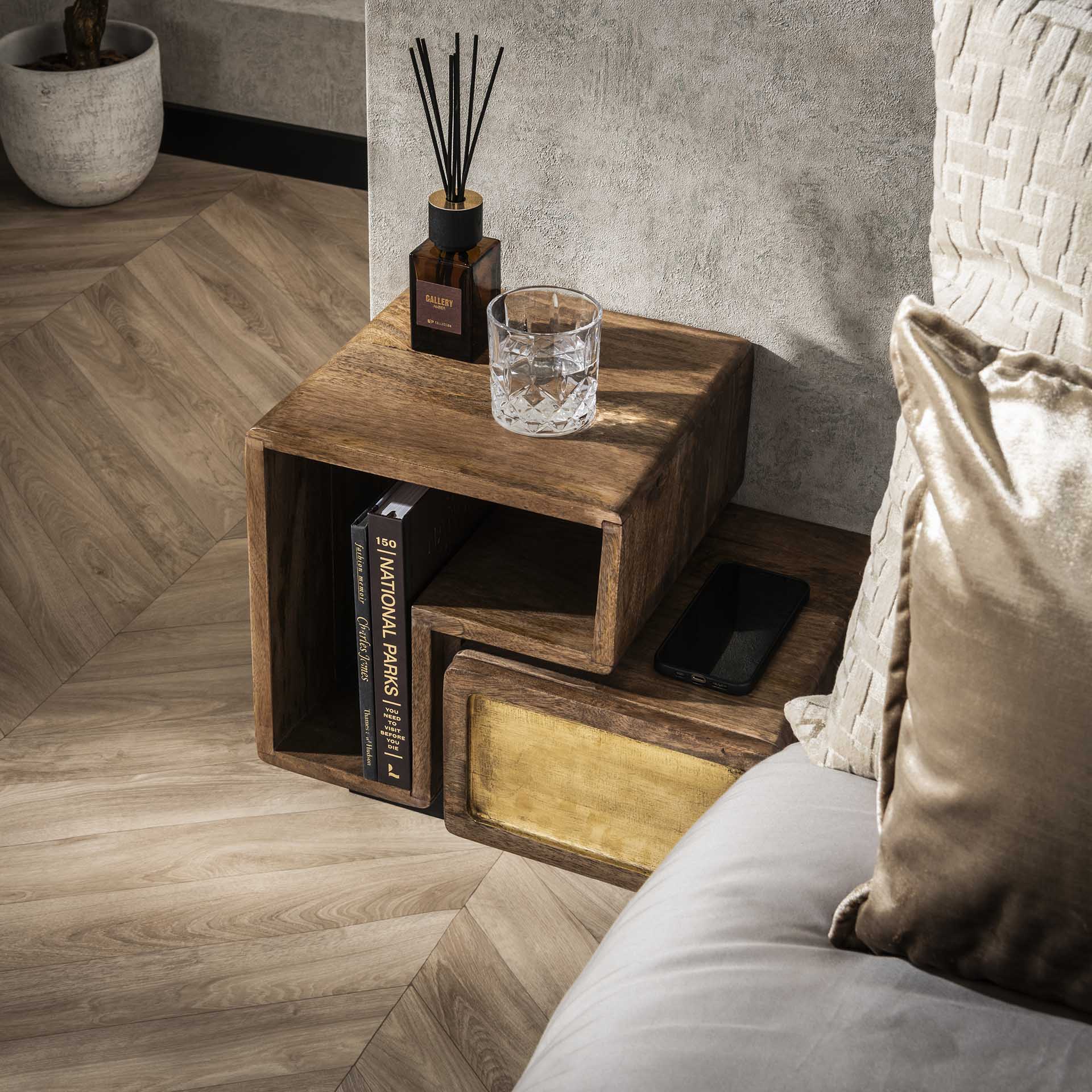 Solano Ensemble de 2 tables de nuit en bois massif de mangue sable et laiton