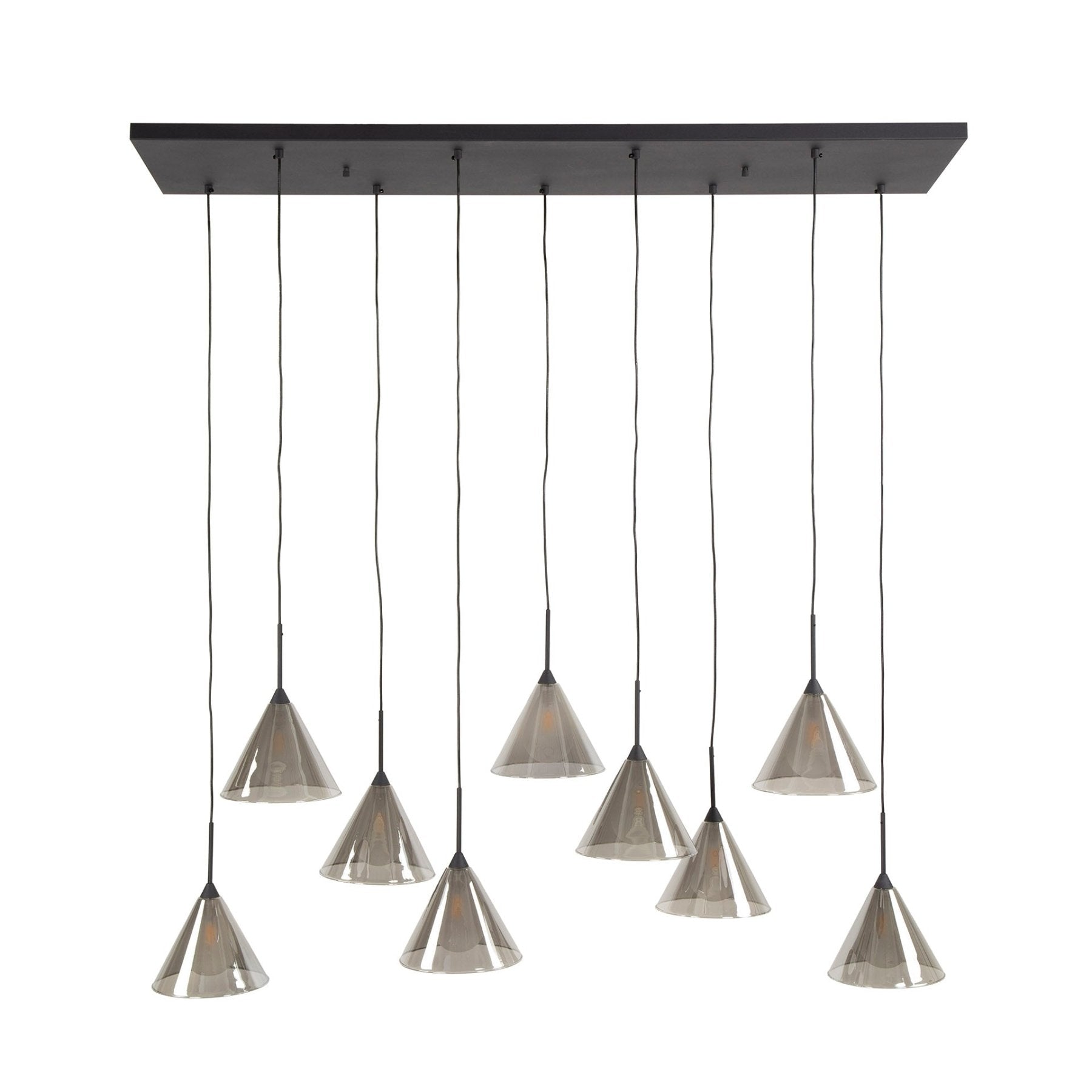 Suspension Niaz 7 lumières abat-jour conique verre fumé gris