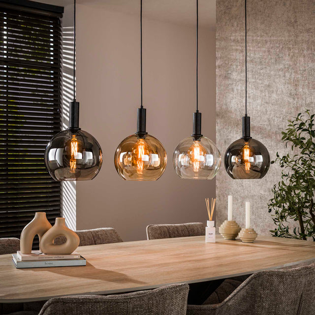 Faites une déclaration de style au-dessus de votre table à manger avec la suspension Valeo. Ce luminaire accrocheur à 4 lumières combine un design épuré avec une ambiance chaleureuse. La longue barre en métal avec une finition noir profond supporte quatre points lumineux qui éclairent uniformément votre espace. Grâce à son silhouette intemporelle, Valeo s'intègre facilement dans les intérieurs modernes, scandinaves et industriels. Avec sa largeur généreuse de 135 cm et sa profondeur subtile de 25 cm, il est idéal au-dessus d'une table à manger, d'un bar ou d'un îlot de cuisine. Utilisez vos sources lumineuses préférées pour obtenir exactement le look et l'ambiance que vous souhaitez; en combinaison avec des sources lumineuses dimmables et un variateur externe, vous créez en un clin d'œil l'ambiance parfaite.