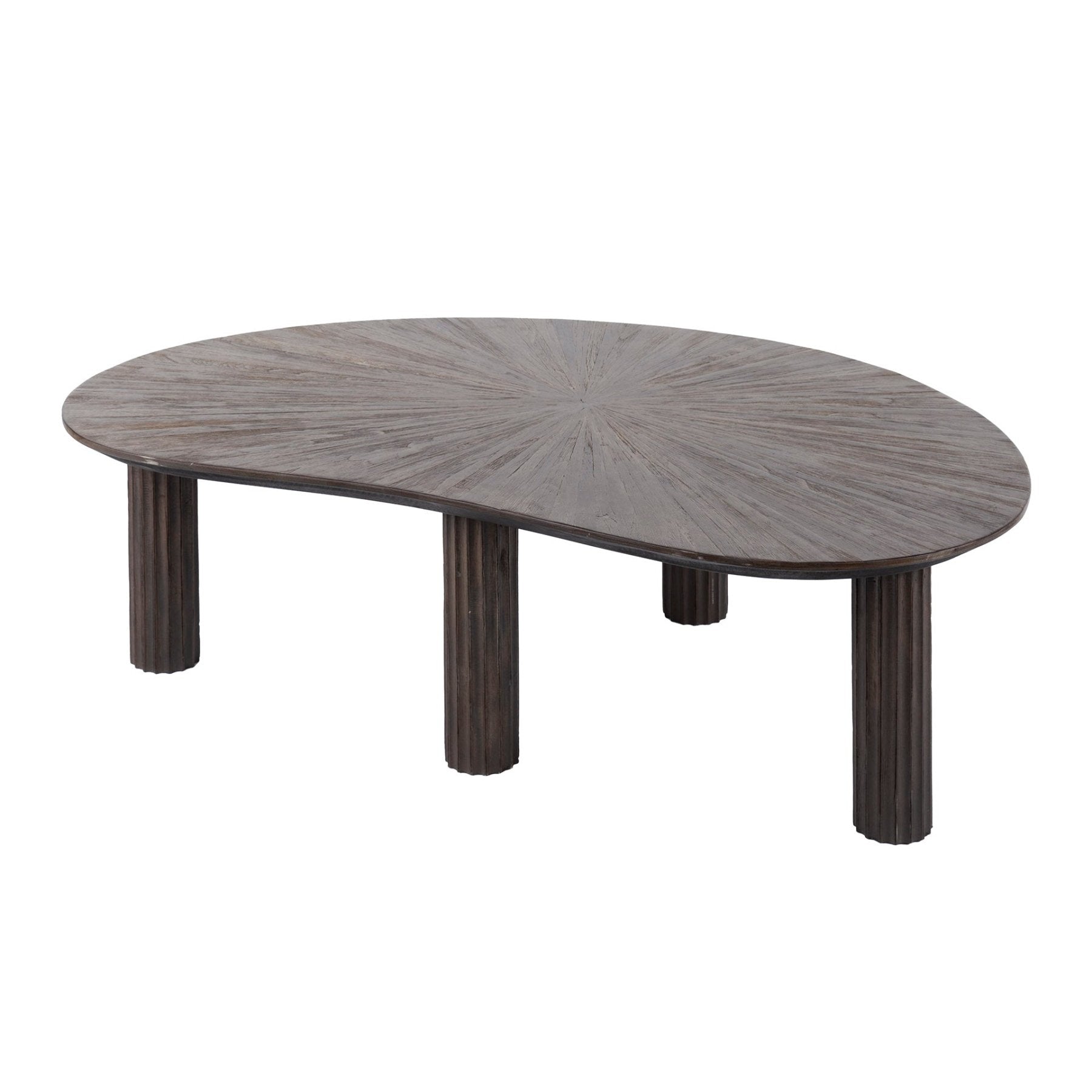 Donnez à votre intérieur un coup de pouce élégant avec la table basse Myla en teck organique brun de 110 cm. Cette magnifique table est conçue dans une forme élégante en forme de rein et fabriquée en teck de haute qualité, finie dans une teinte brun foncé contemporaine. Le bois durable et la conception particulière font de cette table un véritable point focal.