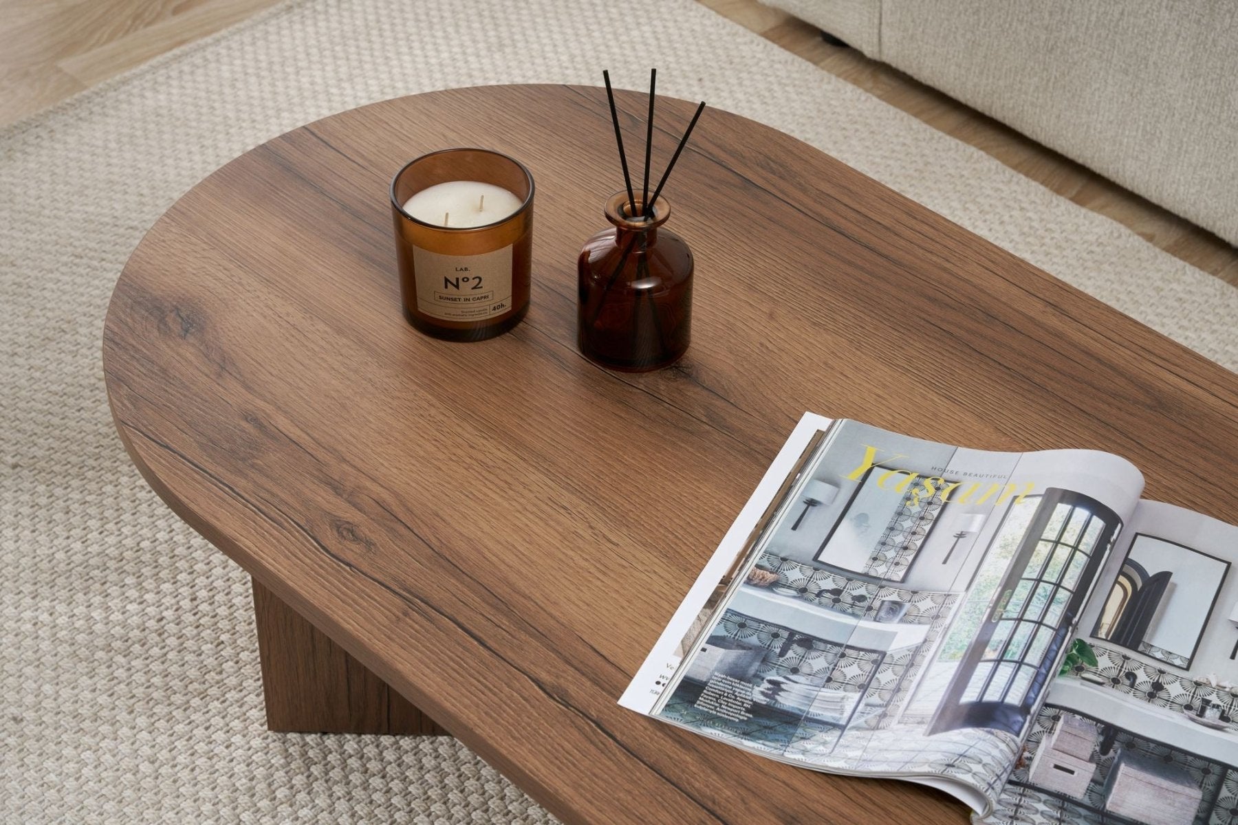 Table basse sable en noyer 119x60 cm en mélamine walnut
