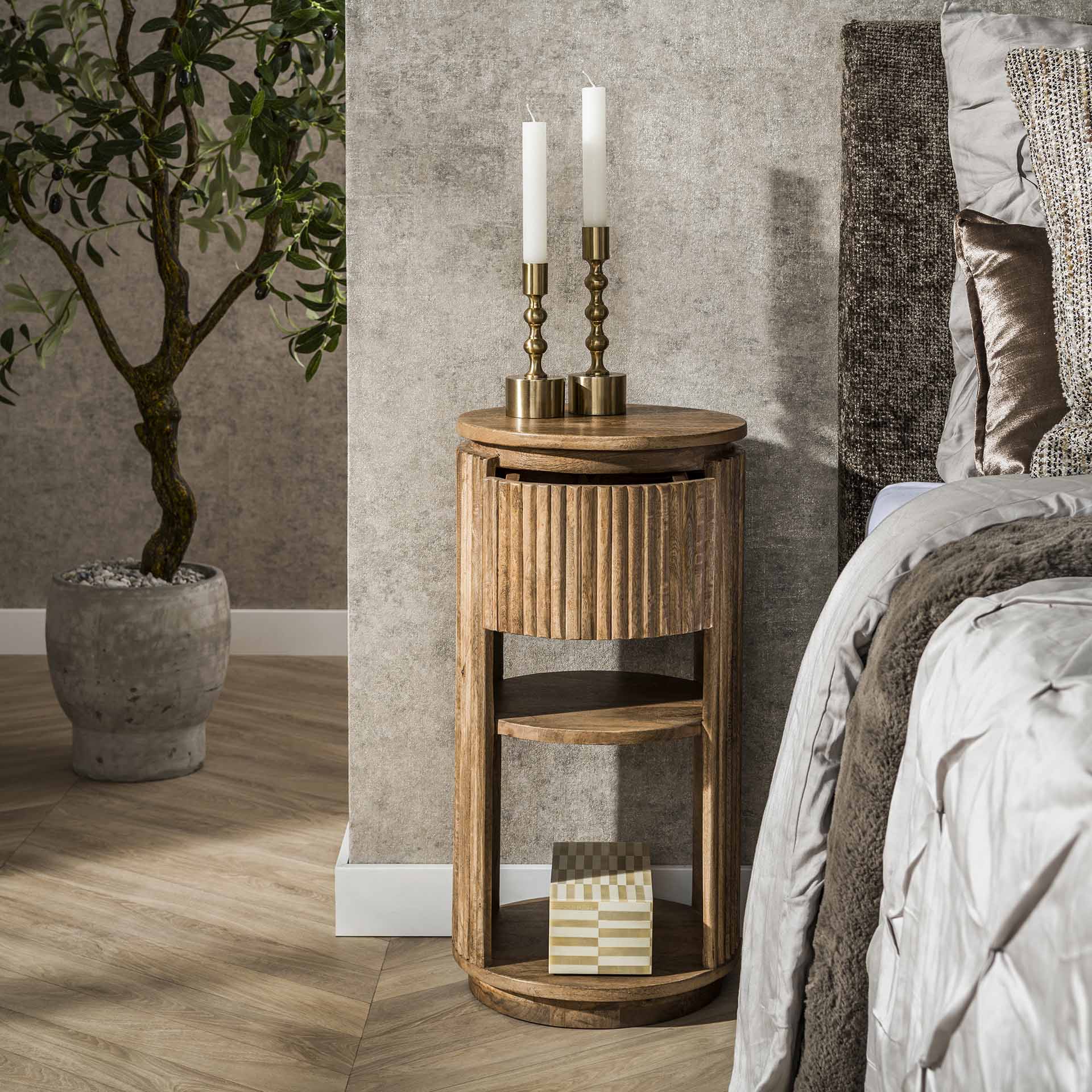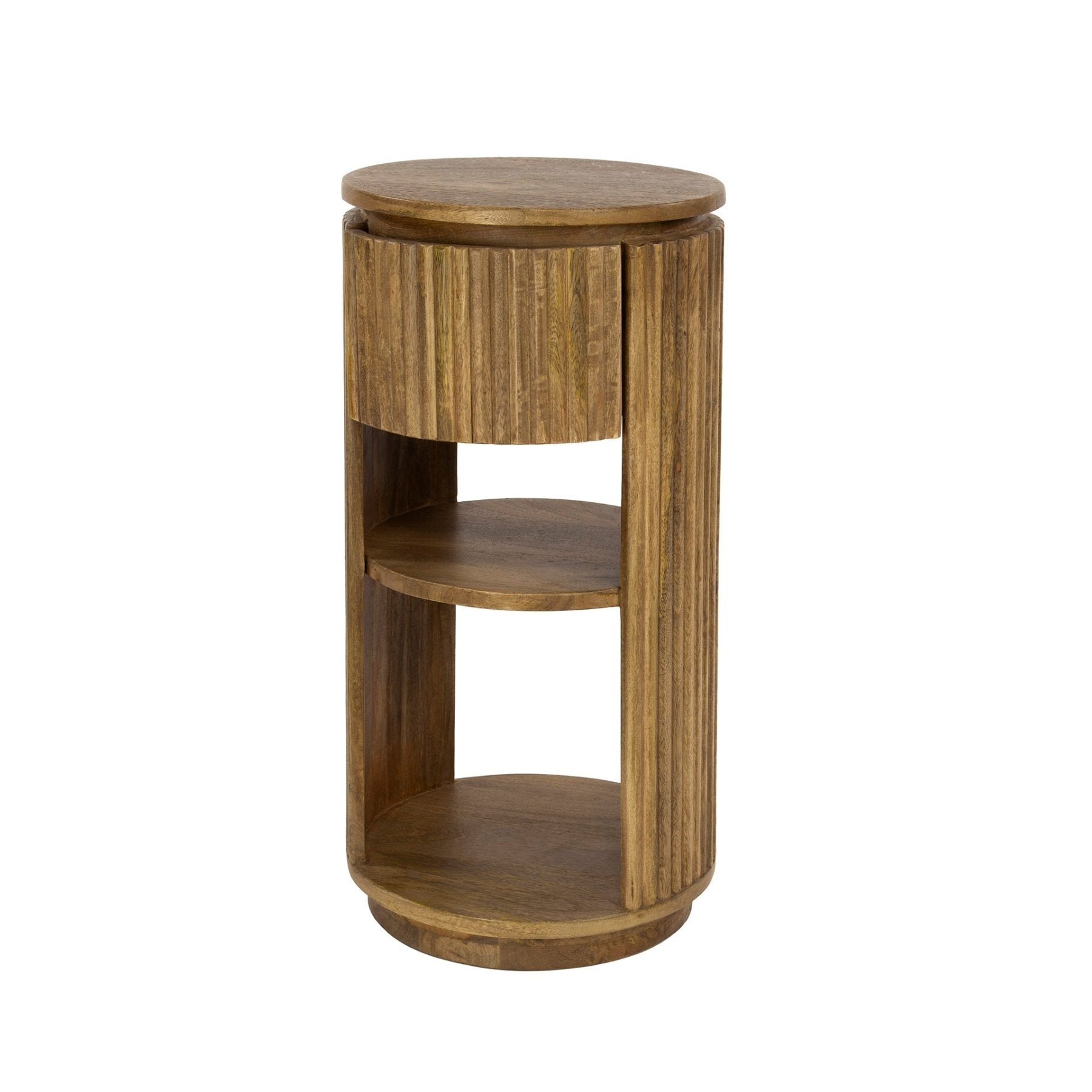 Table de chevet Lio Rond Bois de manguier Sable 1 Tiroir