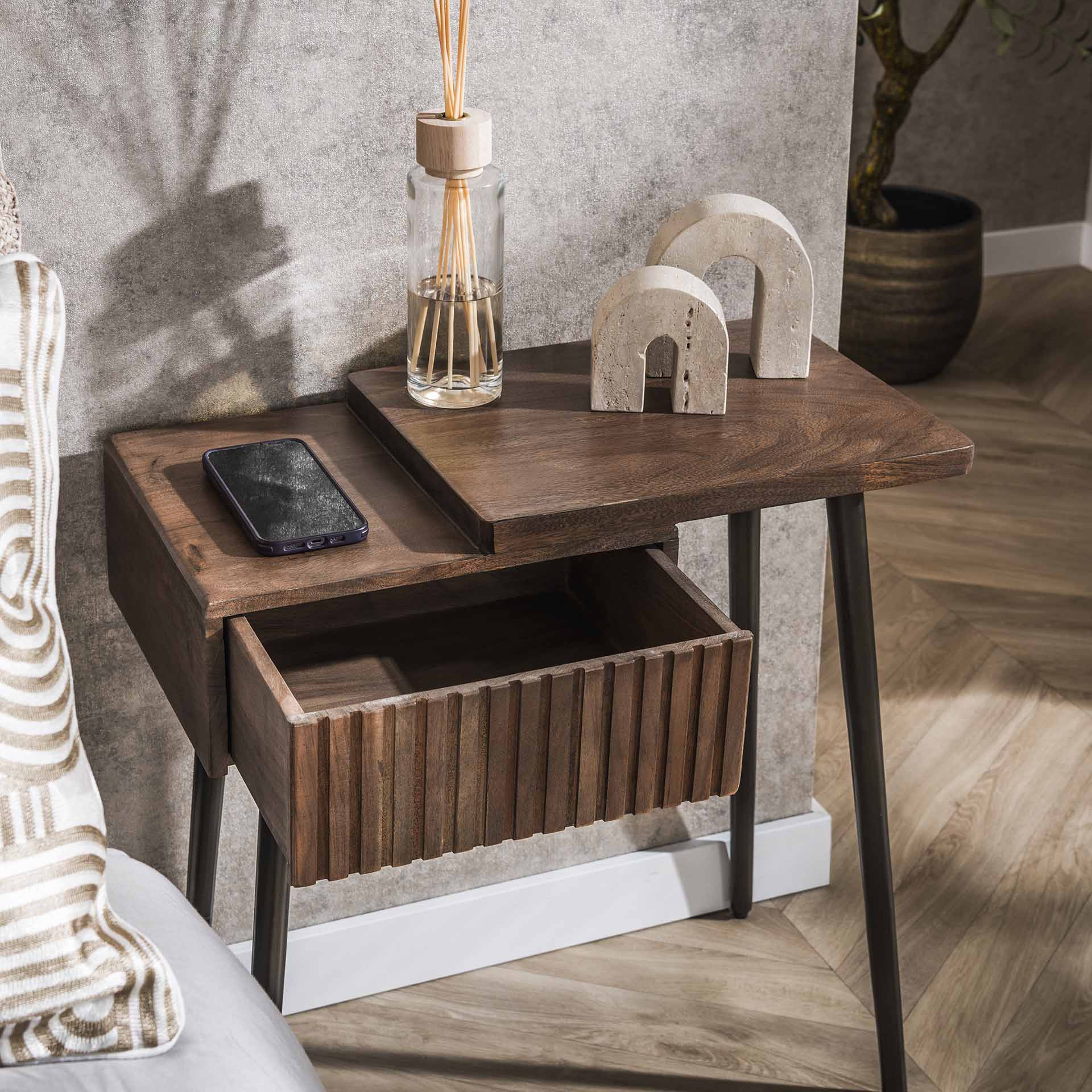 Table de chevet Oslo Droite - Acacia massif Drift Brown (1 tiroir)