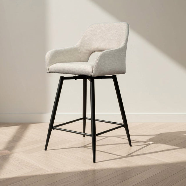 Tabouret de bar rotatif en tissu beige Skye - Hauteur d'assise 67 cm - Avec accoudoirs