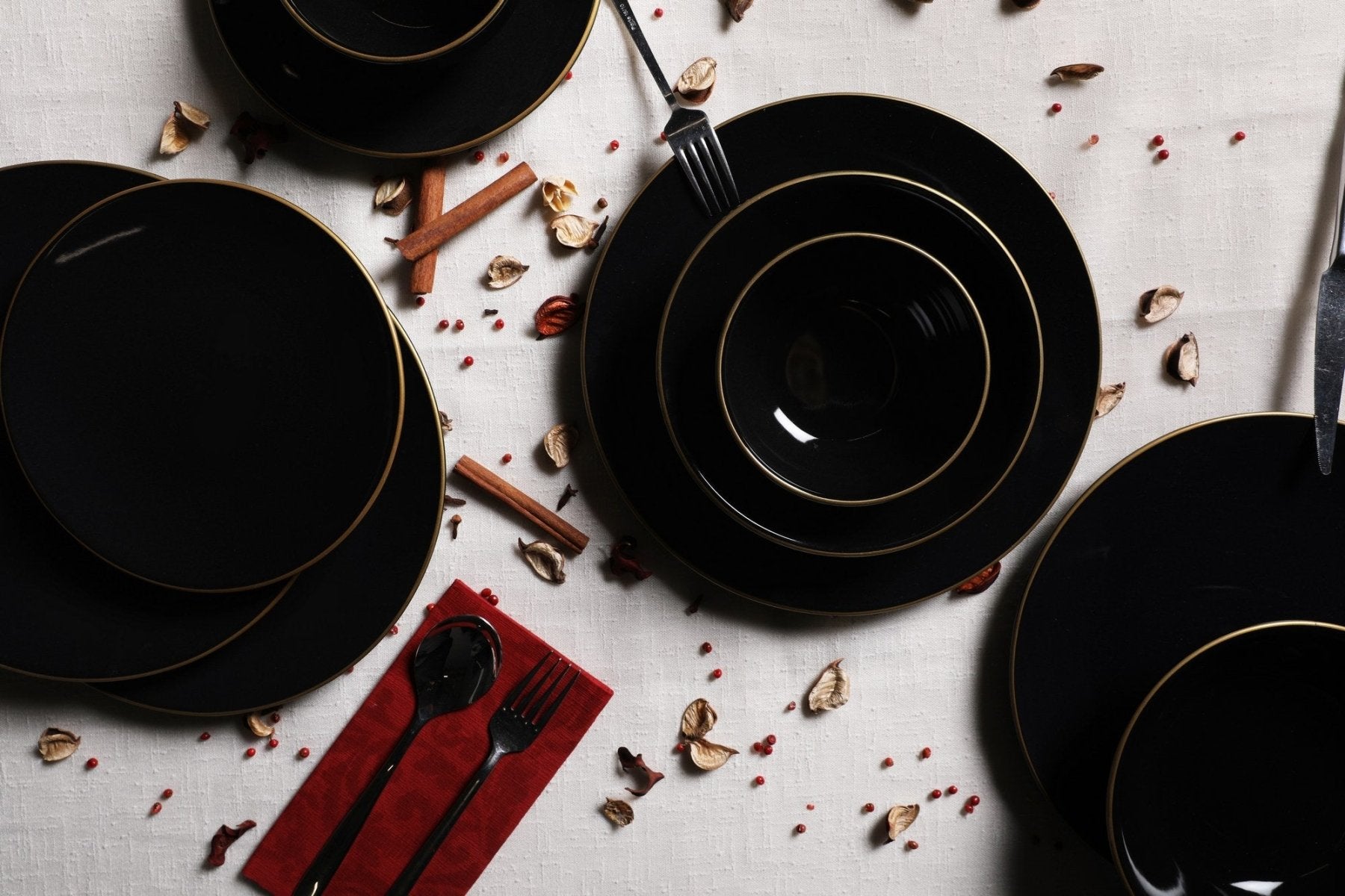 Geef je eettafel een luxe en moderne uitstraling met dit stijlvolle zwarte dinerbord met gouden accenten. De combinatie van diep zwart en subtiel goud zorgt voor een chique en opvallend geheel. Perfect voor zowel dagelijks gebruik als een feestelijk gedekte tafel.