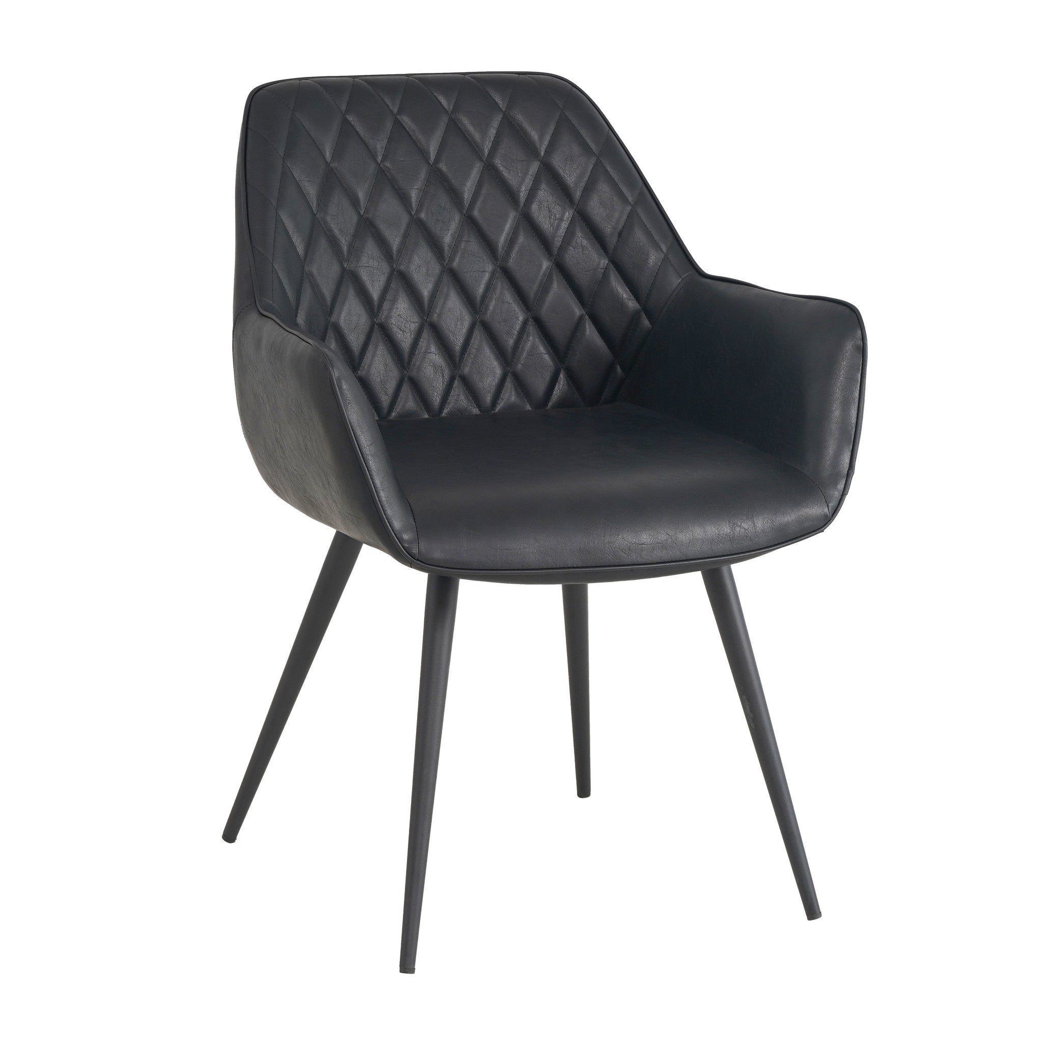 Chaise de salle à manger industrielle noire Cara en simili cuir - Motif en losanges - Avec accoudoirs