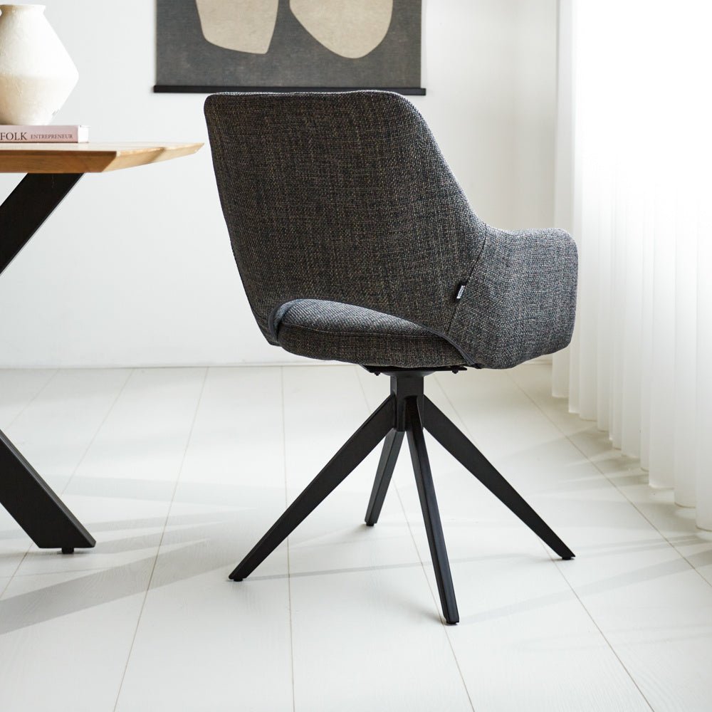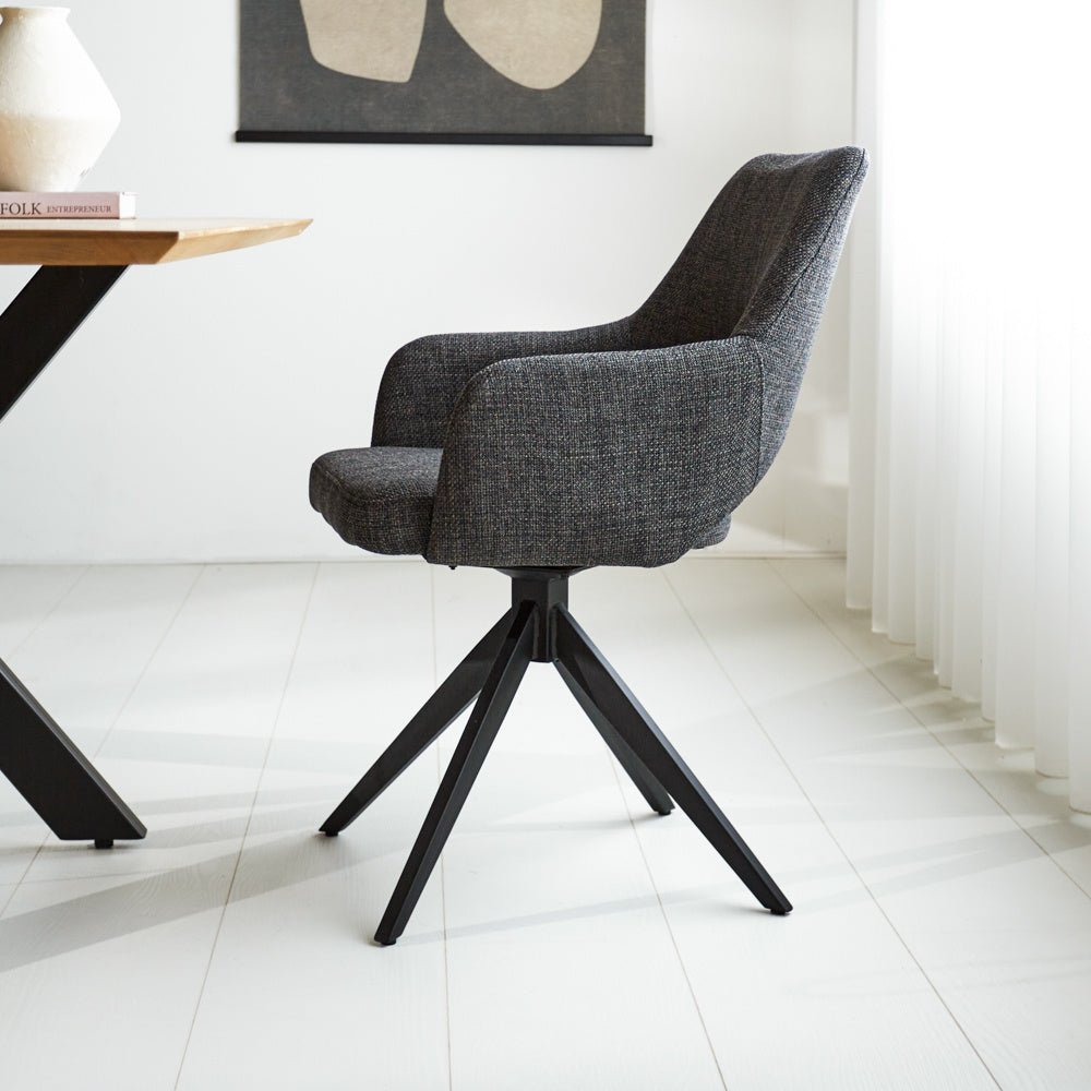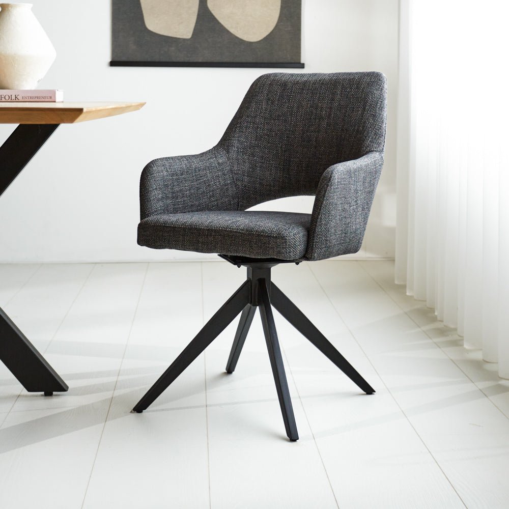 Chaise de salle à manger moderne pivotante en tissu anthracite Sid - Avec accoudoirs