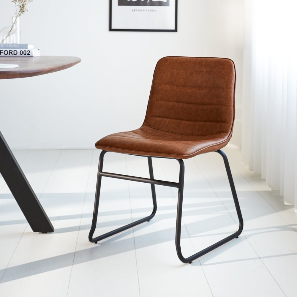 Chaise de salle à manger industrielle Mark Cognac - Similicuir - Sans accoudoirs
